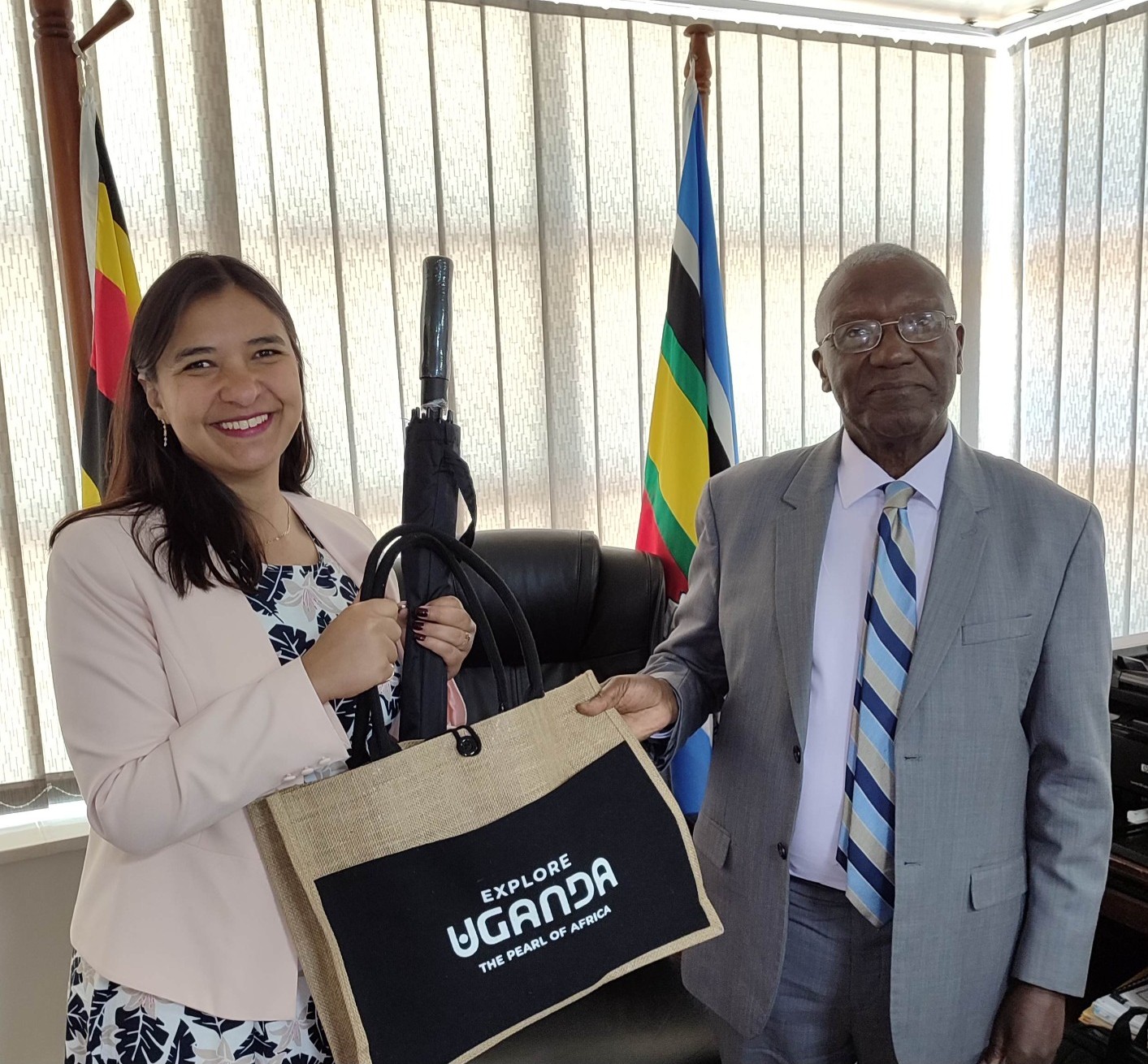 La embajadora de la República Bolivariana de Venezuela ante la República de Uganda, Fátima Fernandes, realizó una visita de cortesía al ministro de Turismo, Vida Silvestre y Antiguedades, Tom Butime, con el objetivo de fortalecer los lazos de cooperación bilateral en materia turística y cultural entre ambas naciones.