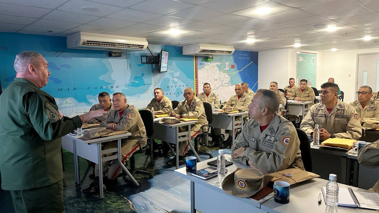El Ministerio del Poder Popular para Relaciones Exteriores de la República Bolivariana de Venezuela a través de la oficina de Fronteras, dirigida por el mayor General Gerardo José Izquierdo, sostuvo este viernes un encuentro con el Estado Mayor de la Milicia Nacional Bolivariana y los 8 comandantes de Regiones de la Estructura de Mando Miliciana, con el objetivo de debatir y enriquecer los planes organizativos y de acción en torno a las directrices emanadas del Poder Ejecutivo para la defensa de la soberanía de la Guayana Esequiba.