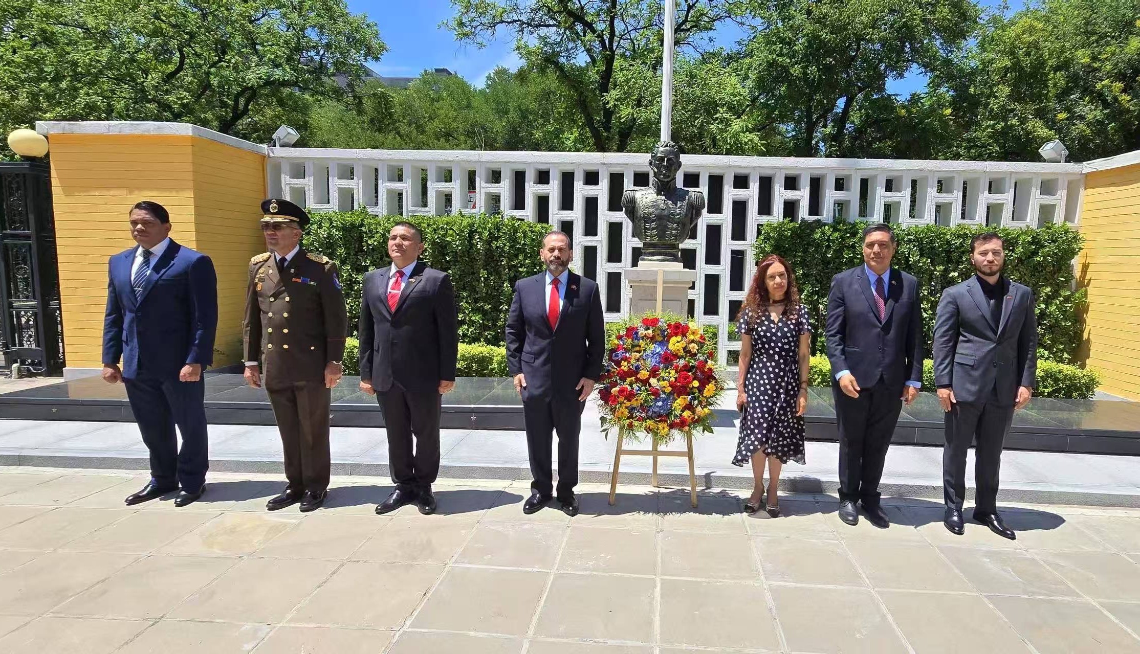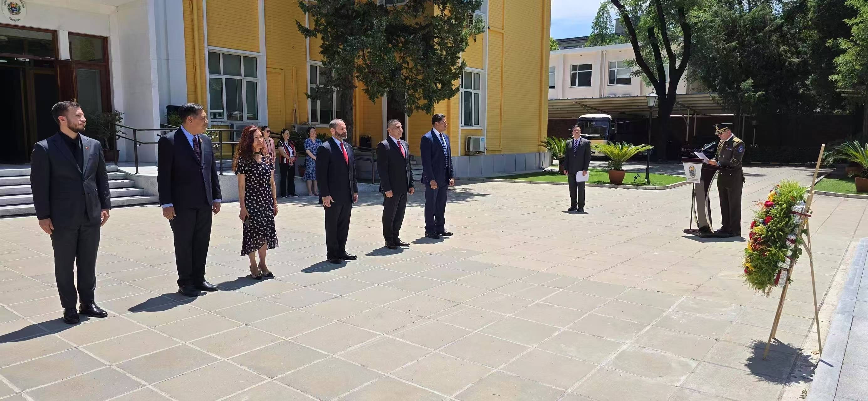 Beijing, 24 de junio de 2025.- En la República Popular China se celebró el 204 aniversario de la Batalla de Carabobo y Día del Ejército Bolivariano, en un emotivo acto realizado ante el busto del Libertador ubicado en la Plaza Bolívar de la Embajada de la República Bolivariana de Venezuela en Beijing.