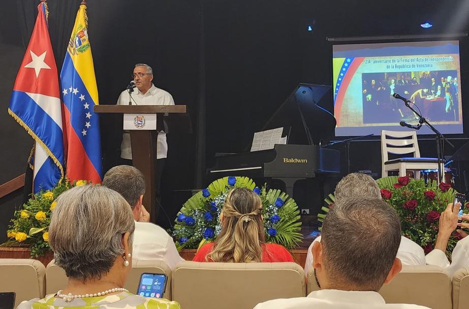 Con ofrendas florales ante el Apóstol de Cuba, José Martí, y el Libertador y Padre de la Patria Simón Bolívar; un conversatorio sobre la Trascendencia Política e Histórica de la Firma del Acta de la Independencia; y una Gala cultural con la participación de la Gran Misión “Viva Venezuela Mi Patria Querida”, la Misión Diplomática venezolana en la República de Cuba conmemoró el 214 aniversario de la Firma del Acta de la Independencia de su país.