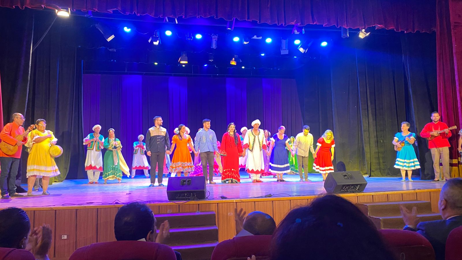 El Cairo, 16 de noviembre de 2025.- En el marco de los actos conmemorativos del 75.º Aniversario del Establecimiento de Relaciones Diplomáticas entre la República Bolivariana de Venezuela y la República Árabe de Egipto, los emblemáticos grupos "Voces Risueñas de Carayaca" y "Reda" ofrecieron una noche cultural inolvidable, en el Teatro El Samer de El Cairo.