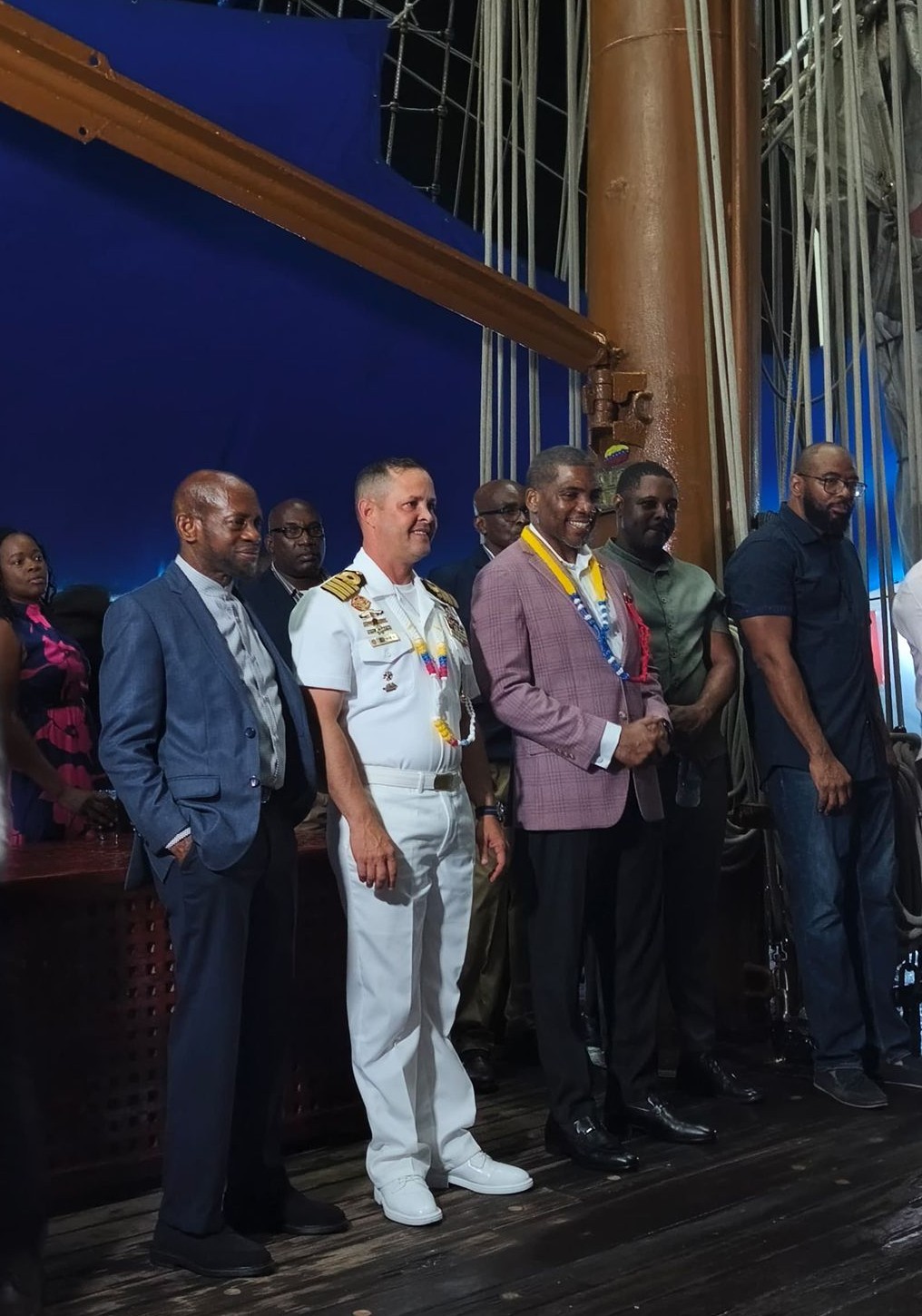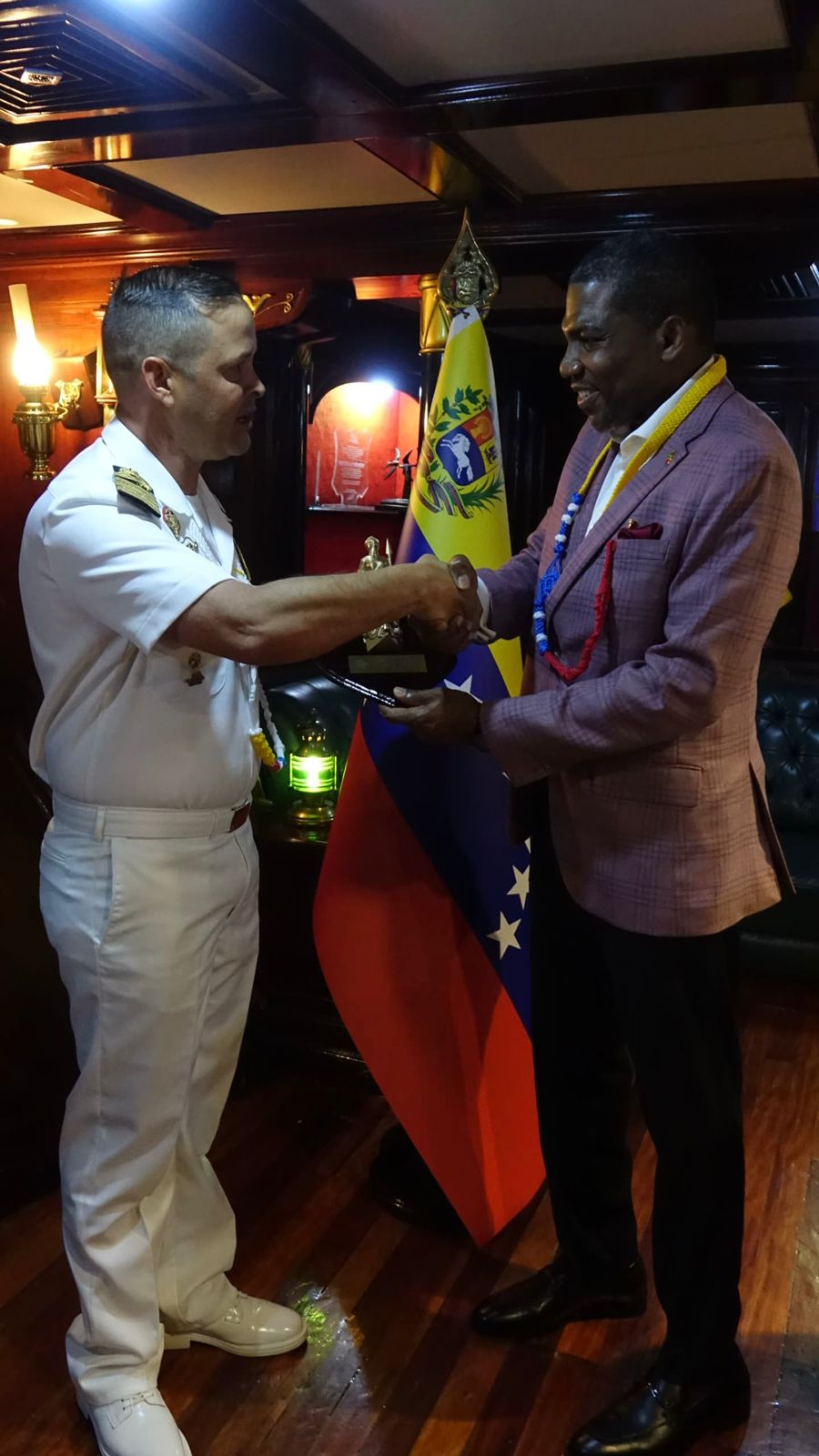 Acompañado por el canciller Denzel Douglas, el mandatario caribeño recorrió los espacios de la nave, al tiempo que presenciaron una representación cultural de la idiosincrasia venezolana, como muestra de hermandad y unión entre ambos pueblos.