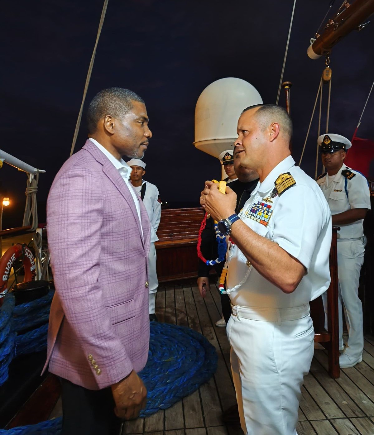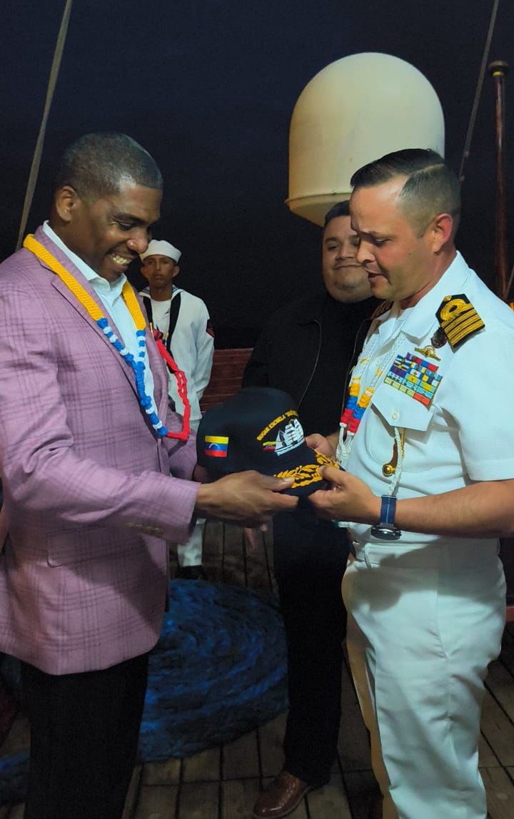Como parte del Crucero de Instrucción “Mares de Unión, por el sueño de Bolívar 2026”, el Buque Escuela Simón Bolívar recibió la visita del Primer Ministro de San Cristóbal y Nieves y actual Presidente Pro Tempore de la Comunidad del Caribe (CARICOM), Terrance Drew, quien compartió con la tripulación de cadetes en formación.