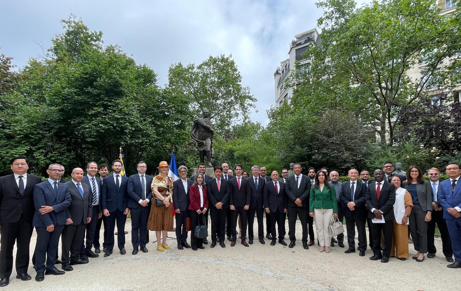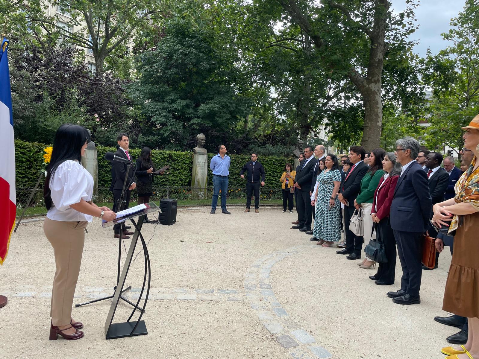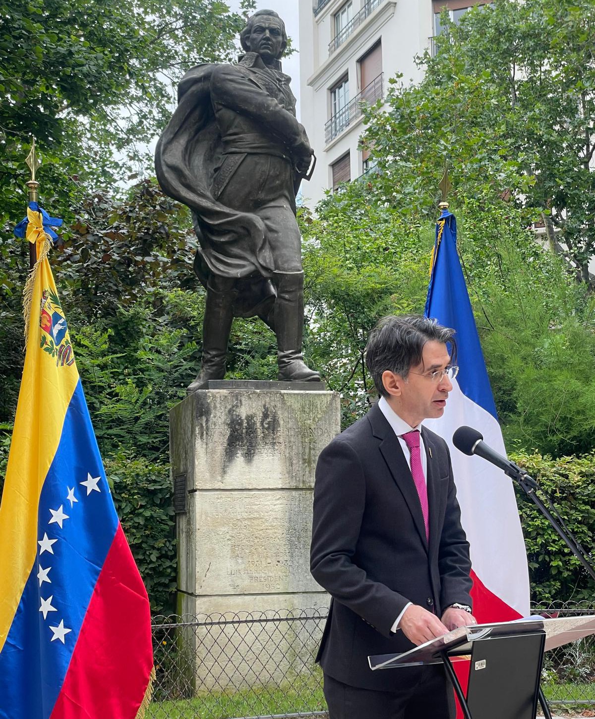 En un acto solemne realizado en el Square de L’Amérique Latine, frente a la estatua de Francisco de Miranda en París, la Embajada de la República Bolivariana de Venezuela en Francia, acompañada por la Representación Permanente ante la UNESCO, conmemoró el 213º aniversario de la firma del Acta de Independencia.