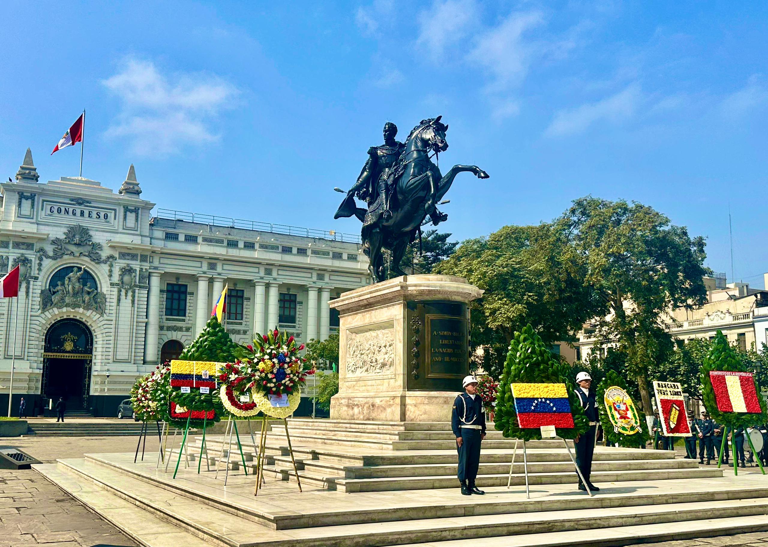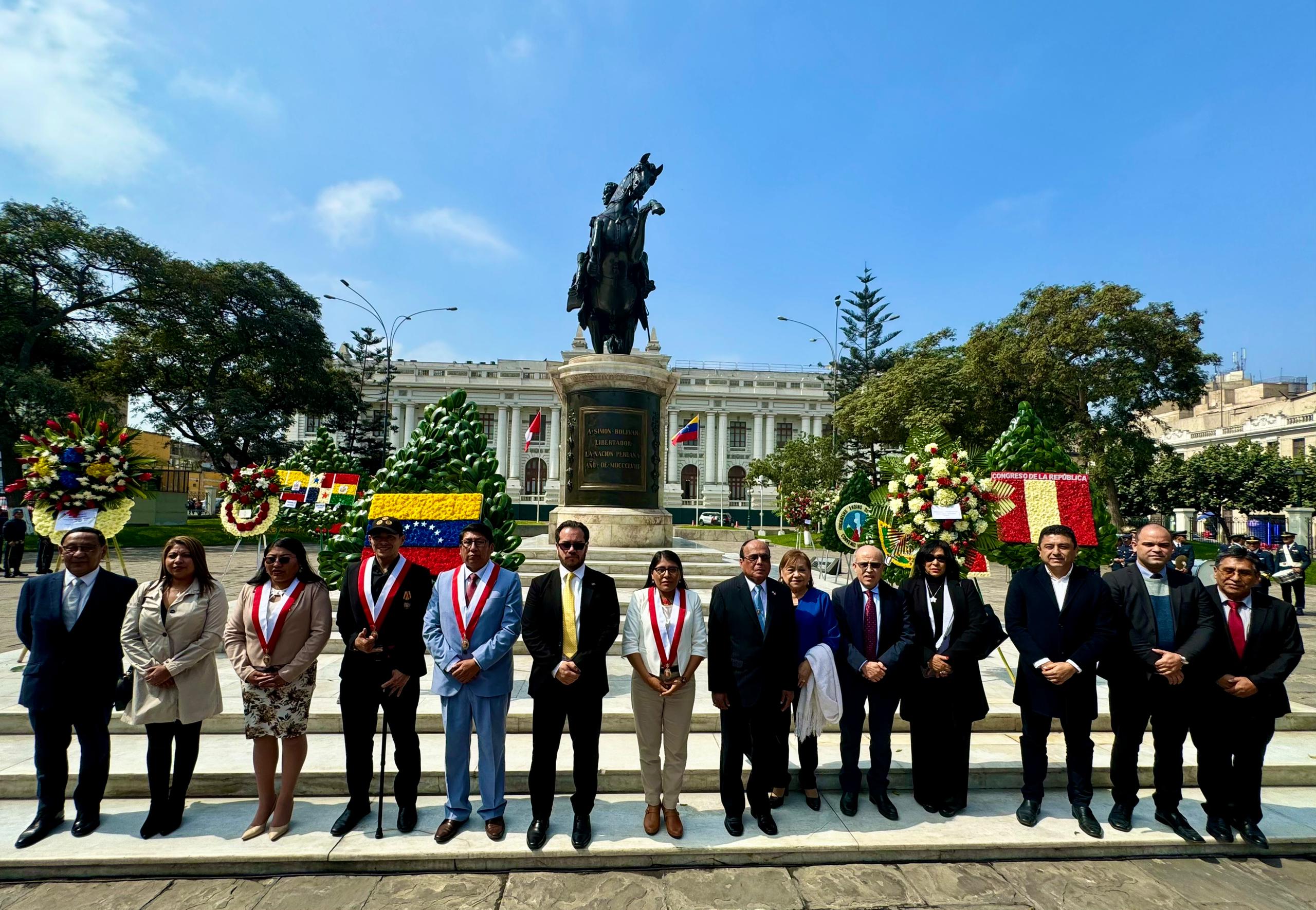 Esta celebración tuvo lugar en la emblemática Plaza Bolívar del Congreso de la República del Perú, frente a la estatua ecuestre erigida en honor al Libertador Simón Bolívar, padre de la gesta emancipadora latinoamericana.