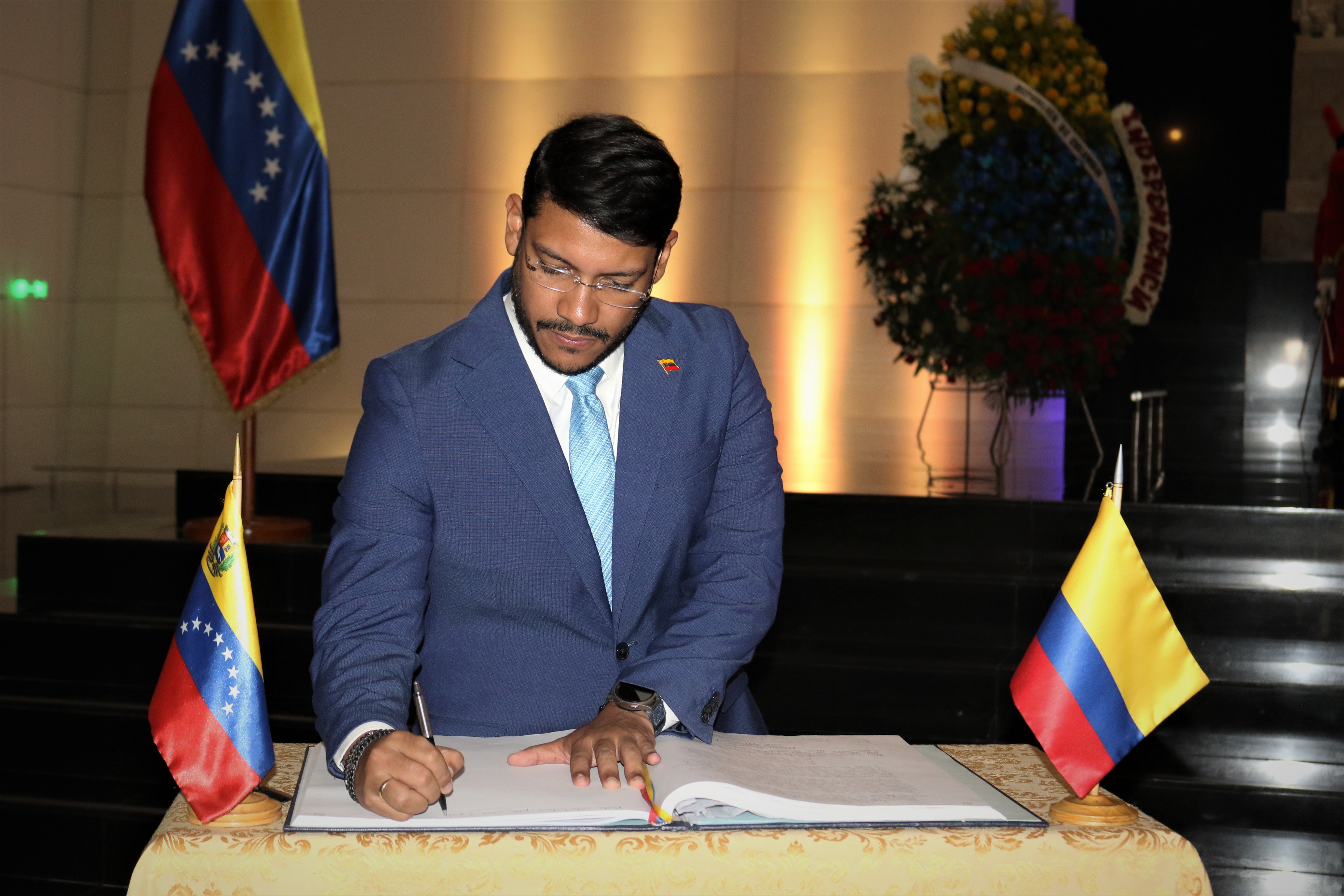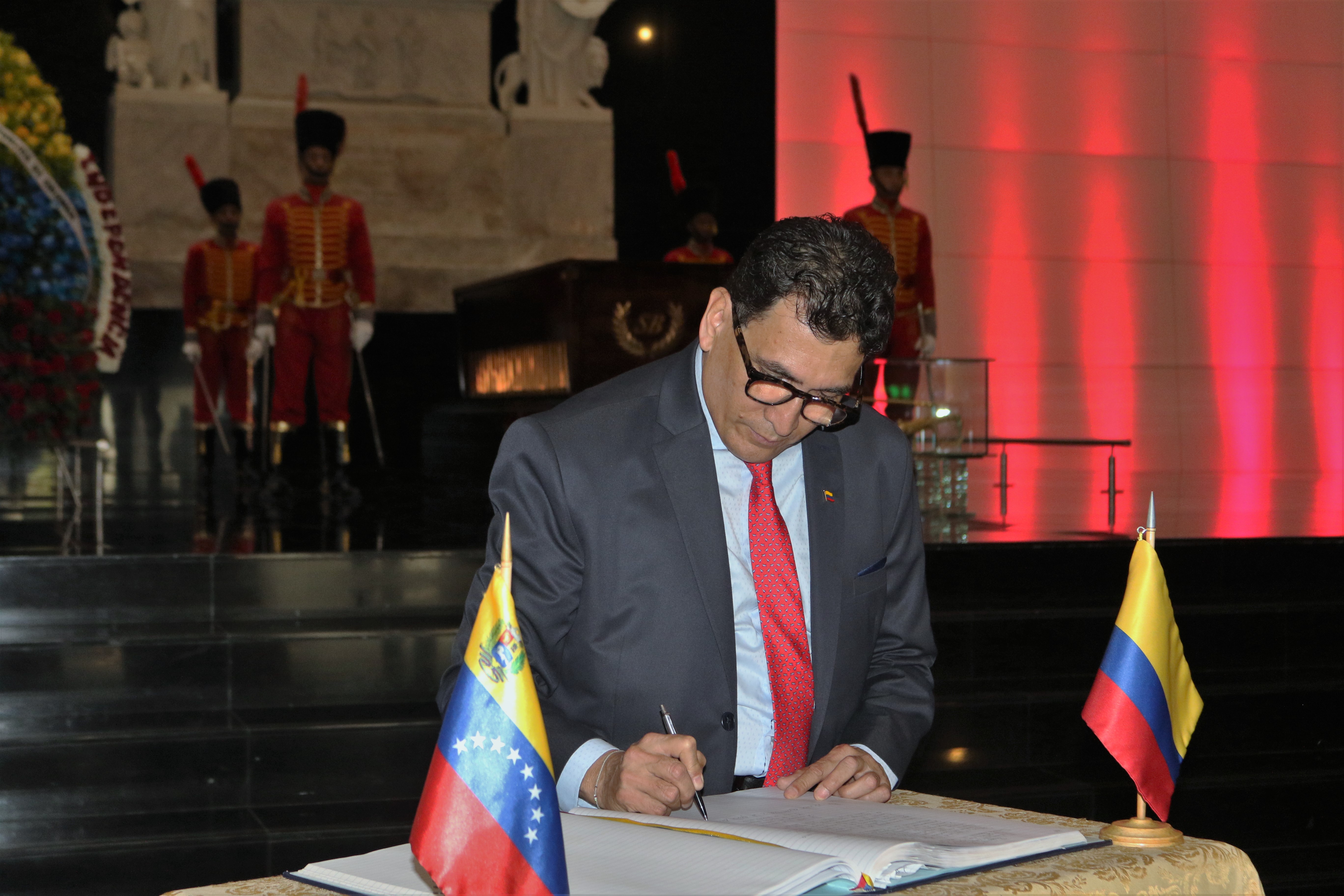 El acto protocolar tuvo lugar en el mausoleo del Libertador Simón Bolívar, donde reposan los restos mortales del prócer que lideró la independencia de ambos países de la colonización española.