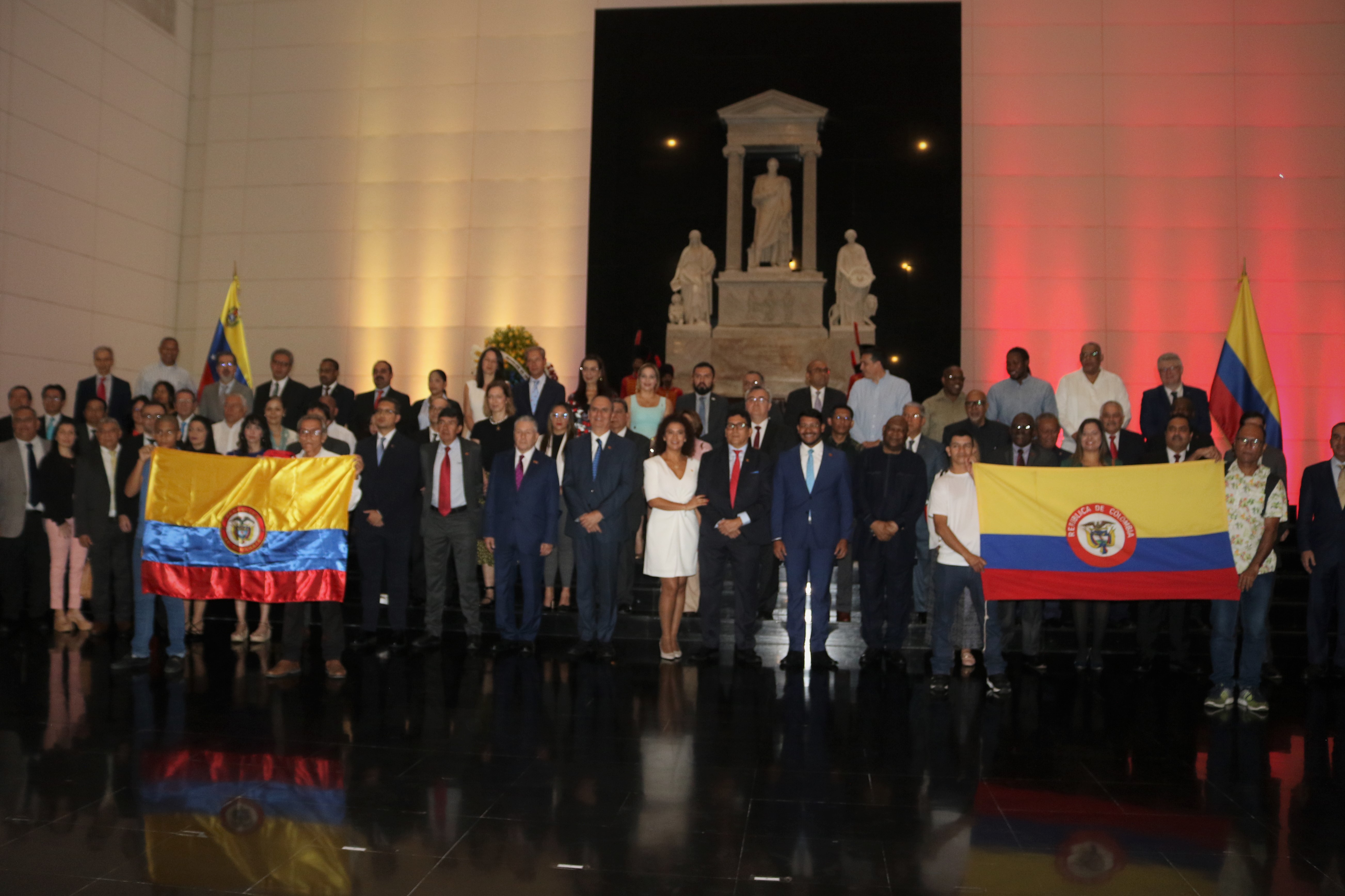 Asistieron a la ofrenda floral los miembros de la misión diplomática y consular, Procolombia, cuerpo diplomático acreditado en Caracas, representantes de las asociaciones de colombianos y funcionarios de la Cancillería venezolana.