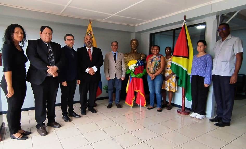 En la sede de la Embajada de la República Bolivariana de Venezuela en Georgetown se realizó este miércoles el acto solemne para conmemorar el 241º Aniversario del Natalicio del Libertador Simón Bolívar, quien encarnó los valores espirituales y morales de la venezolanidad.