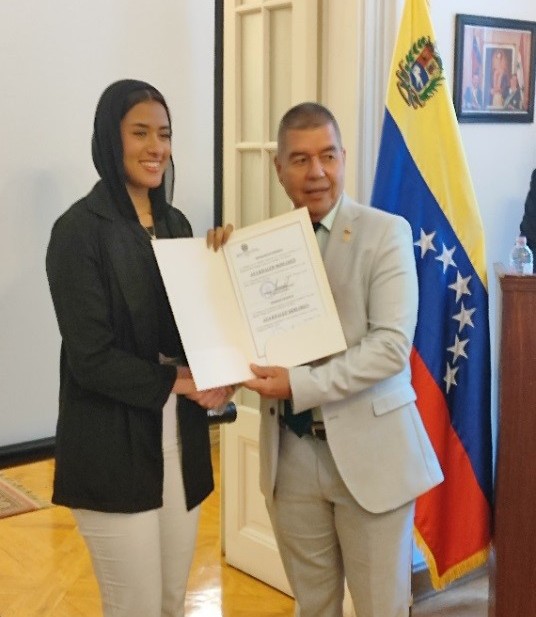 La ocasión fue propicia para, en el marco de la cooperación institucional con las universidades egipcias, entregar certificados de culminación a un grupo de estudiantes de español de la Facultad de Lenguas de la Universidad de Ain Shams, la casa de estudios más importante de El Cairo, que completaron exitosamente un programa de pasantías con esta Misión Diplomática, siendo este un requisito necesario para completar sus pensum de estudio y posterior recepción de títulos de pregrado.