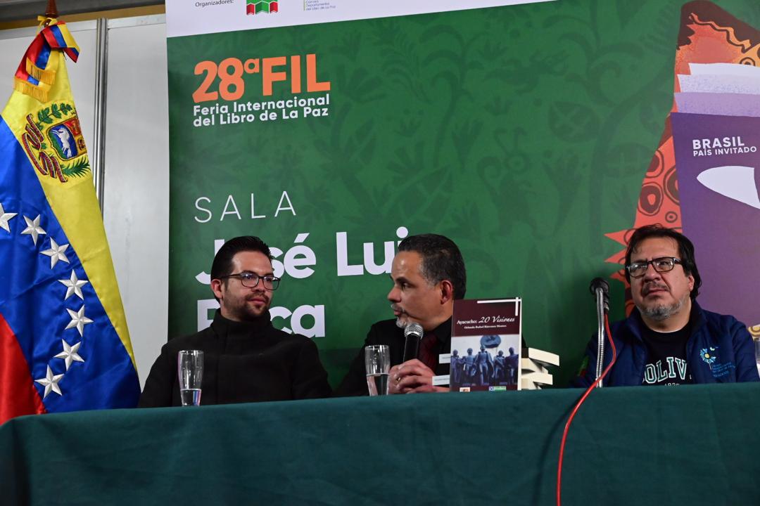 La Embajada de la República Bolivariana de Venezuela ante el Estado Plurinacional de Bolivia, conjuntamente con el Banco Prodem y la Cámara Departamental del Libro de La Paz, presentaron la obra “Ayacucho: 20 Visiones”, del destacado escritor venezolano Orlando Rafael Rincones, en el marco de la 28° Feria Internacional de La Paz, celebrada en las instalaciones del Campo Ferial Chuquiago Marka.