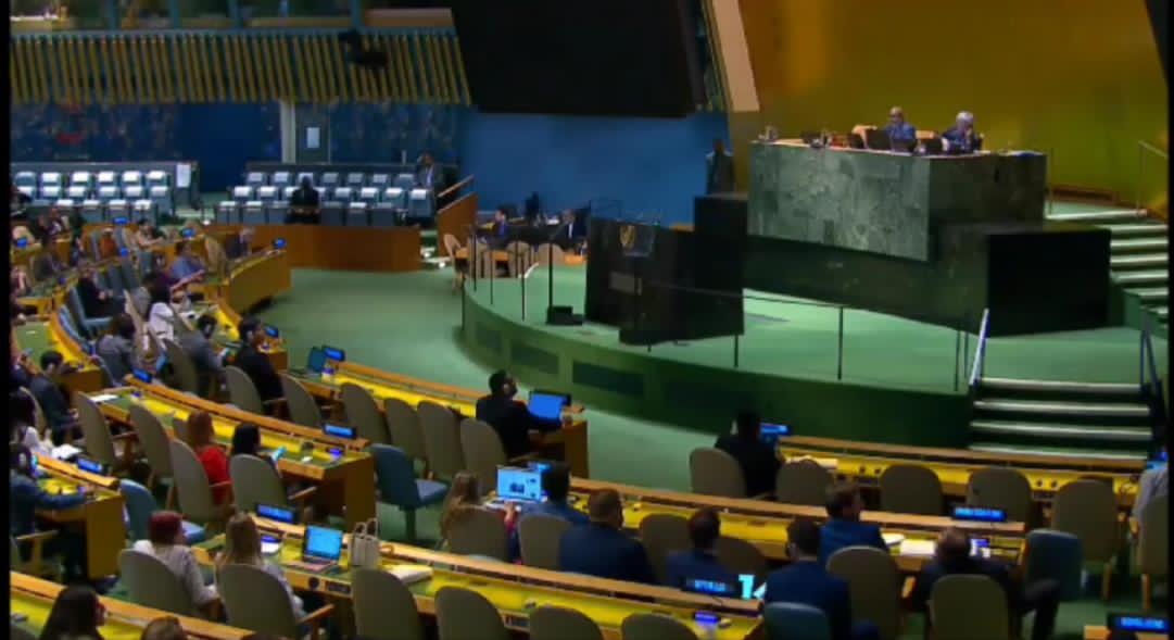 El embajador Joaquín Pérez Ayestarán, representante permanente alterno de la República Bolivariana de Venezuela ante la Organización de las Naciones Unidas (ONU), participó este viernes en la última reunión plenaria de la Asamblea General de cara al 79° Período de Sesiones, tras la adopción del proyecto de resolución “Eliminación de las Medidas Económicas Coercitivas Unilaterales Extraterritoriales utilizadas como Instrumento de Coacción Política y Económica”.