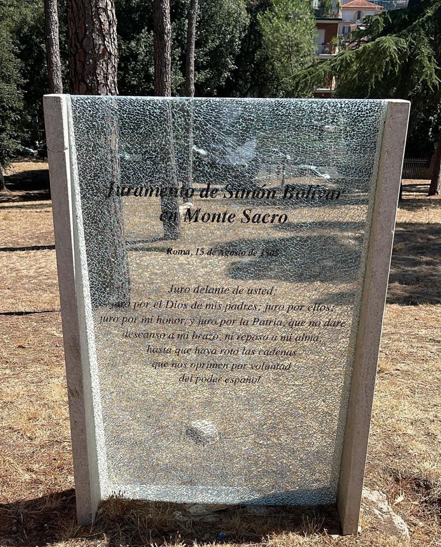Los cuatro paneles de vidrio que forman parte del monumento fueron destruidos, dañando la información que contenían sobre el juramento histórico que Bolívar hizo, en ese mismo lugar, en 1805.