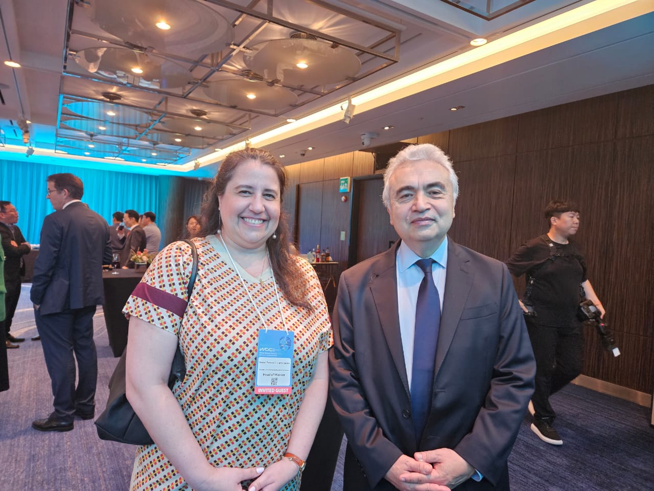 En el evento, la Encargada de Negocios Isabel Di Carlo Quero saludó, a nombre del Gobierno Bolivariano de Venezuela, al director ejecutivo de la Agencia Internacional de Energía, Fatih Birol, quien comentó sobre sus visitas a Venezuela en experiencias laborales pasadas en el sector energético, y habló de la visión de los países OPEP (Organización de Países Exportadores de Petróleo) en la diversificación de sus matrices energéticas con el desarrollo de tecnologías para el uso de fuentes renovables de energía.