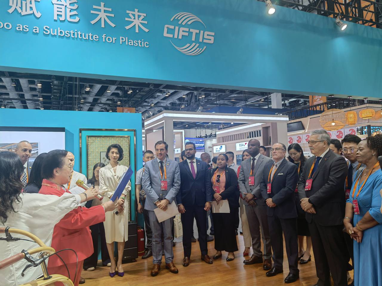 En el marco de la Feria Internacional de Comercio de Servicios de China (CIFTIS) 2024, la Embajada de la República Bolivariana de Venezuela estuvo presente en el pabellón de la Organización del Bambú y el Ratán (INBAR), junto a los embajadores del Grupo de Países de América Latina y el Caribe (GRULAC) acreditados en la nación asiática.