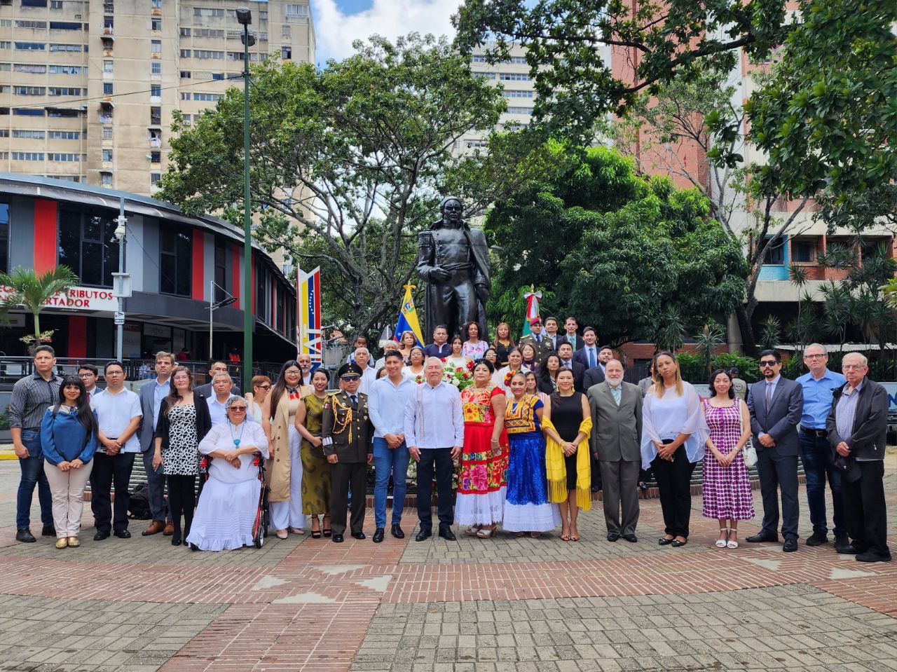 Con motivo de la conmemoración del 214° aniversario de la proclamación de la independencia de los Estados Unidos Mexicanos, el cuerpo diplomático de este hermano país centroamericano acreditado en Venezuela realizó este lunes una ofrenda floral ante la estatua de José María Morelos y Pavón, en Caracas.