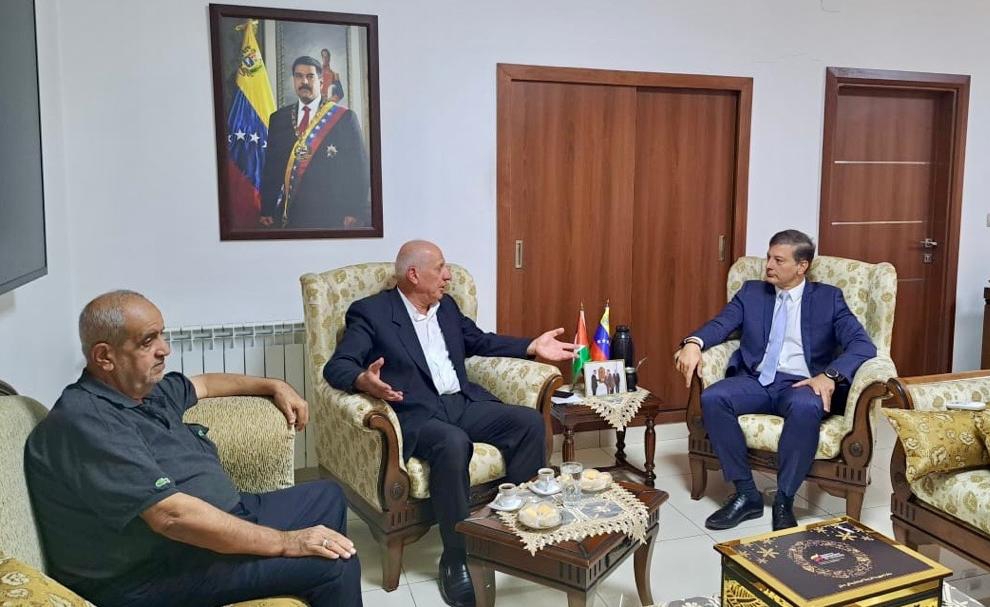 El embajador de la República Bolivariana de Venezuela en Siria, José Gregorio Biomorgi, recibió en la sede de la Misión Diplomática al jefe del Buró Político del Movimiento de Liberación Nacional Palestina Fatah Al-Intifada, Musa Maragha Abu Al Said, y al miembro del Buró Político, Taysir Musa.