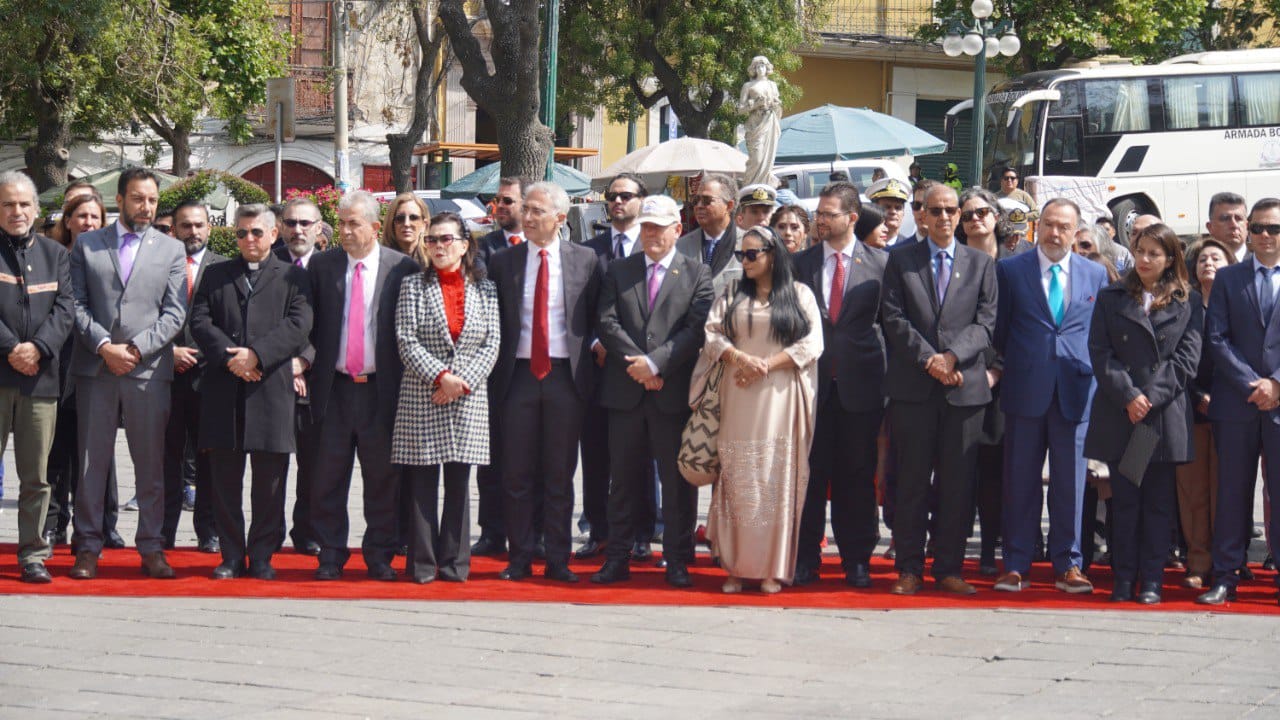 El acto estuvo presidido por el embajador de México en Bolivia, Eduardo Sosa Cuevas, y contó con la presencia de representantes de instituciones del Estado boliviano, quienes se unieron a la celebración en tan importante fecha para la nación azteca.