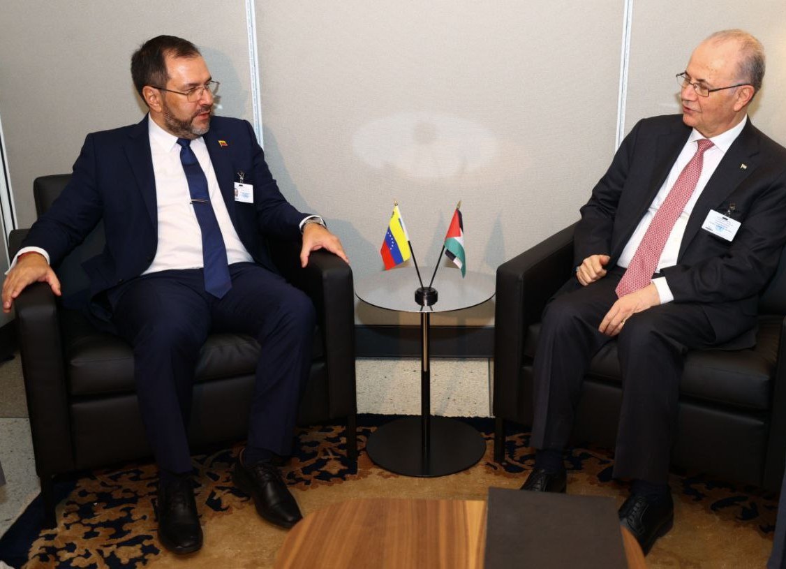 El ministro del Poder Popular para Relaciones Exteriores de la República Bolivariana de Venezuela, Yván Gil, se reunió este miércoles con el Primer Ministro y ministro de Relaciones Exteriores y Expatriados del Estado de Palestina, Mohammad Mustafa, con el fin de fortalecer los lazos de hermandad y solidaridad.