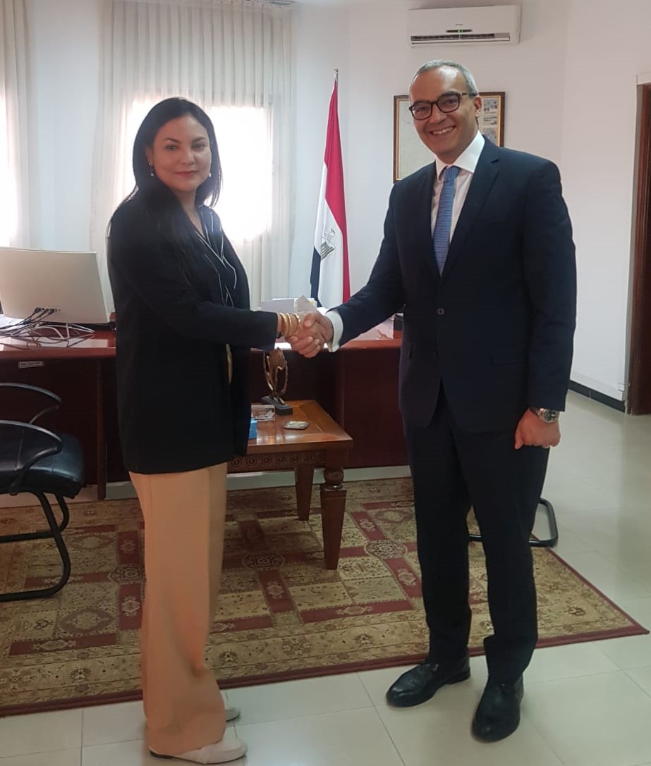 Con el Embajador de Egipto, la diplomática conversó sobre las excelentes relaciones bilaterales, particularmente las visitas de altas autoridades venezolanas a El Cairo