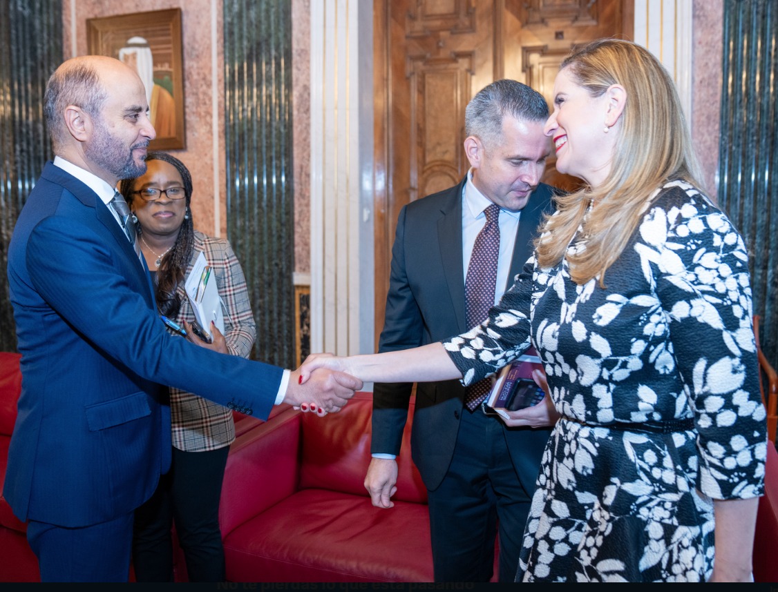 La embajadora de la República Bolivariana de Venezuela ante la República de Austria, concurrente ante Eslovaquia, Eslovenia y Croacia, Claudia Salerno Caldera, realizó este miércoles una visita de cortesía a la sede del Fondo OPEP para el Desarrollo Internacional (OFID), ubicada en la ciudad de Viena, en la cual fue recibida por su presidente, Abdulhamid Alkhalifa (nacional de Arabia Saudita), con quien conversó sobre la importancia que tiene para Venezuela dicha instancia multilateral, luego de haber asumido el pasado mes de junio la Vicepresidencia para el período 2024-2025, en el marco del 45º Consejo Ministerial.