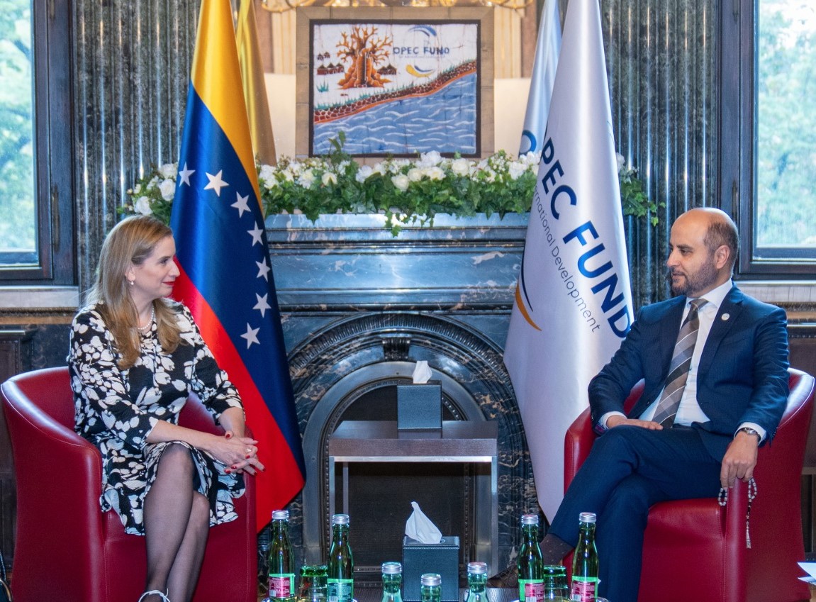 La diplomática fue recibida por su presidente del Fondo, Abdulhamid Alkhalifa, con quien conversó sobre la importancia que tiene para Venezuela dicha instancia multilateral, luego de haber asumido el pasado mes de junio la Vicepresidencia para el período 2024-2025, en el marco del 45º Consejo Ministerial