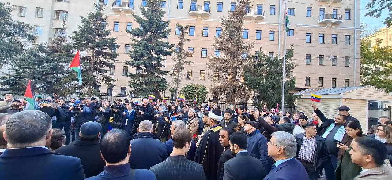 En el acto tomaron la palabra Alexánder Mudraguéi, miembro del Capítulo Rusia de la Internacional Antifascista; Artur Jachatrián, presidente de la Asociación Internacional de Expertos de la Diplomacia; Marad Gazie, presidente de la Asociación Internacional de Abogados Musulmanes e Imel Ashurov, miembro del Consejo de Muftíes y presidente de la Unión de Musulmanes de Rusia, quienes al unísono confirmaron su rechazo a la tragedia que vive el pueblo palestino y abogaron por la paz en el Oriente Medio.
