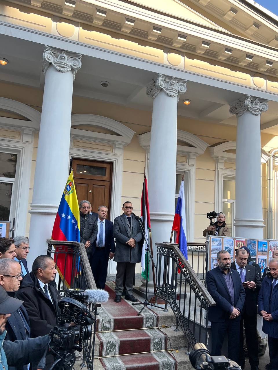 En el acto, el embajador de Palestina acreditado ante el Gobierno de la Federación de Rusia, Abdel Hafiz Nofal, agradeció al Gobierno y pueblo venezolanos, así como al Capítulo Rusia de la Internacional Antifascista y el Movimiento de Solidaridad con Venezuela, por la iniciativa de expresar de manera clara y contundente su apoyo a Palestina ante la agresión de la cual es víctima.
