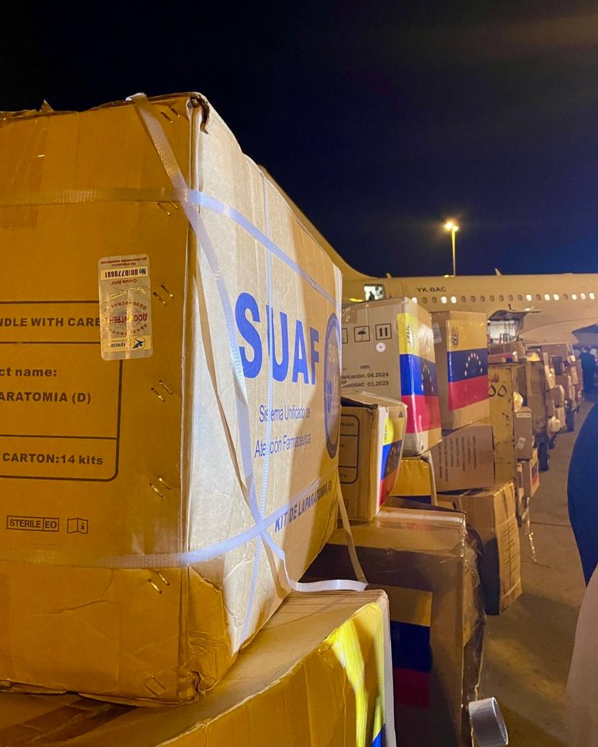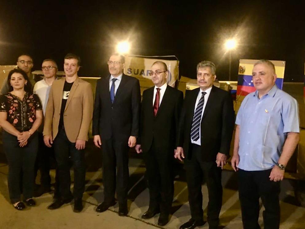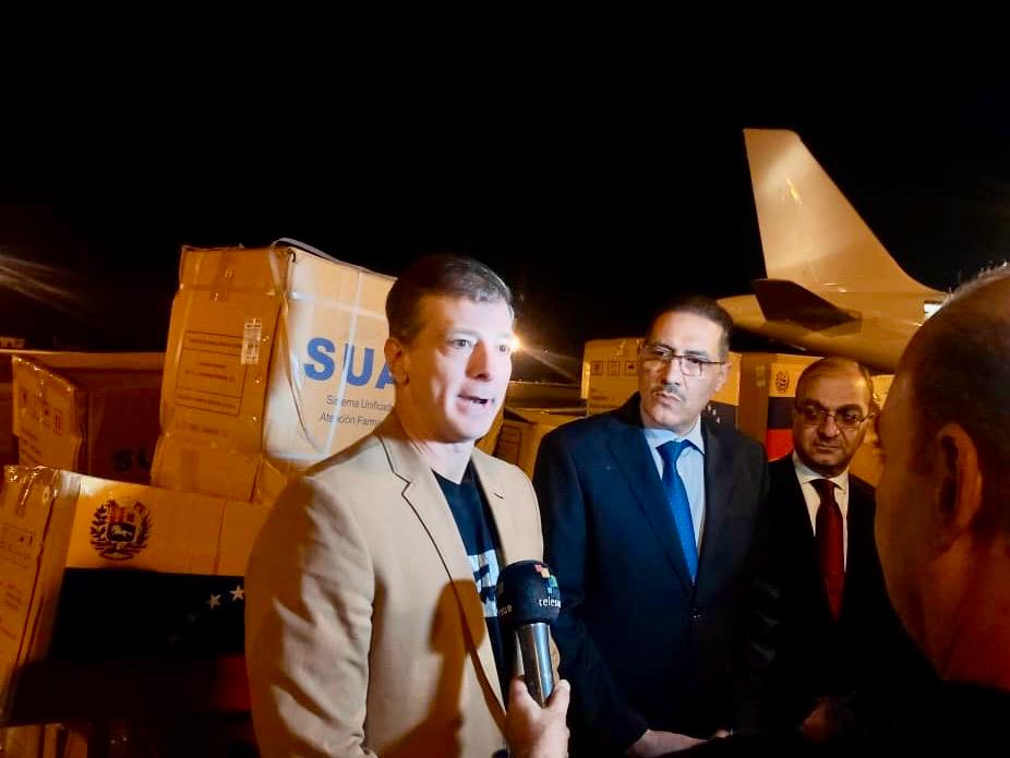 El embajador venezolano José Gregorio Biomorgi, en compañía de autoridades sirias y personal de la Misión Diplomática venezolana, recibió el primer vuelo con ayuda humanitaria enviada por el Gobierno Bolivariano, en solidaridad con los pueblos del Líbano y Siria.