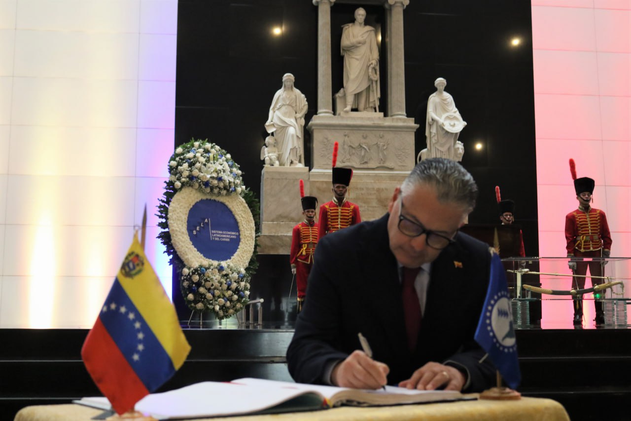La ceremonia estuvo encabezada por el secretario permanente del SELA, embajador Clarems Endara; el viceministro para Temas Multilaterales del Ministerio del Poder Popular para Relaciones Exteriores, Rubén Darío Molina; el embajador de la República de Barbados acreditado en el país, Aquinas Clarke; el Primer Secretario de la Embajada de la República de Colombia, Germán Castañeda; y el Encargado de Negocios de la República de Cuba, Jorge Mayo.
