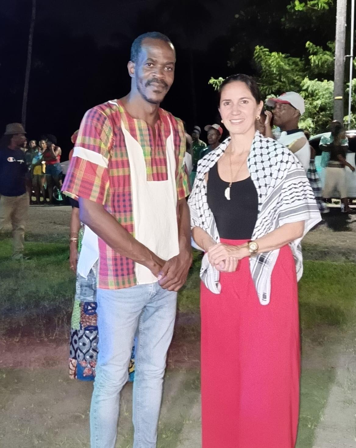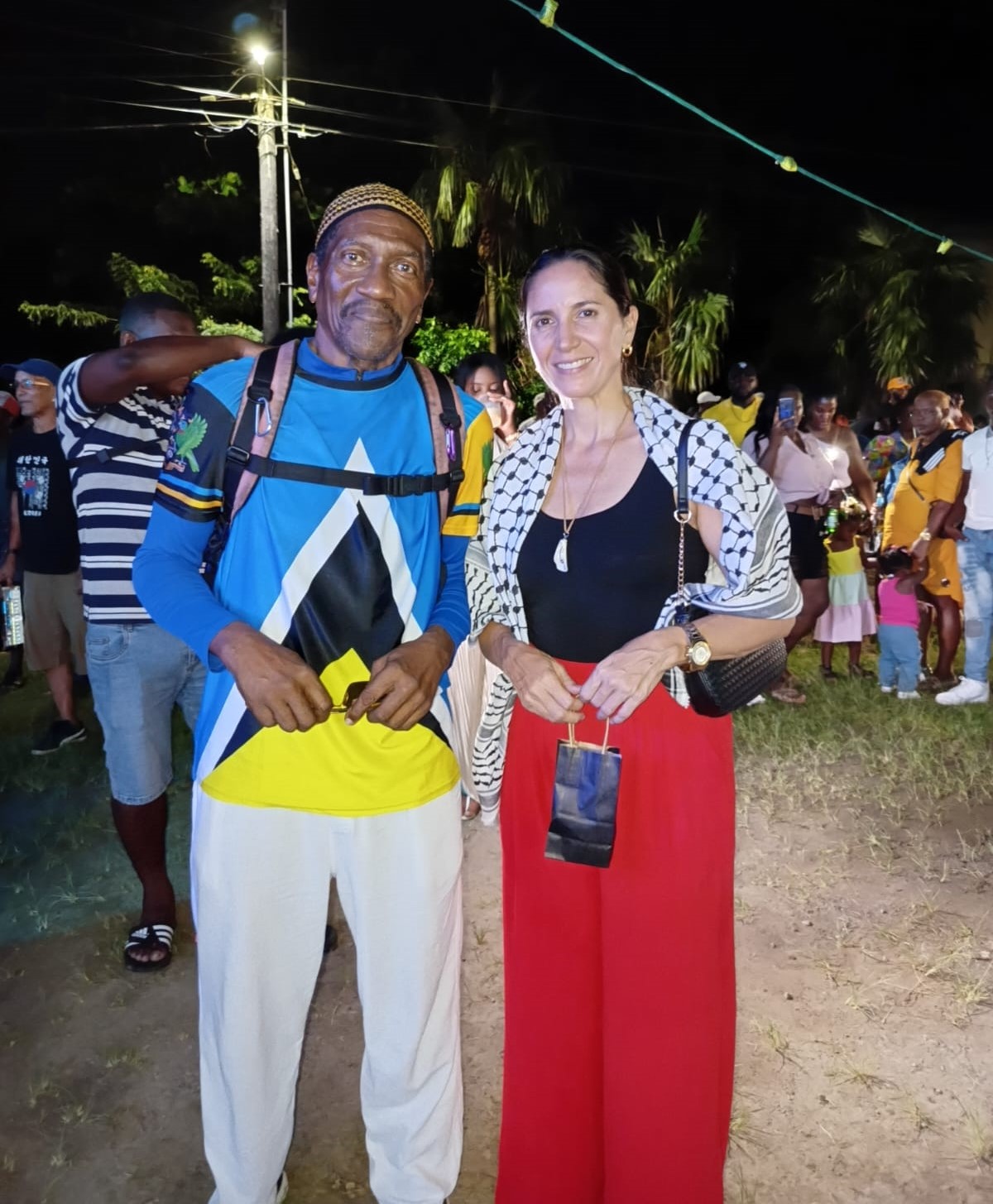 Durante la Jornada Mundial de Solidaridad con Palestina, celebrada en la víspera en la comunidad de Belle Vue, Vieux Fort, al finalizar el conversatorio organizado por la Internacional Antifascista y la Embajada venezolana, la directiva de la Fundación Ferness invitó a la embajadora Leiff Escalona para que ofreciera unas palabras en pro de la paz y expresara su solidaridad con el pueblo palestino durante el citado festival del Jazz.