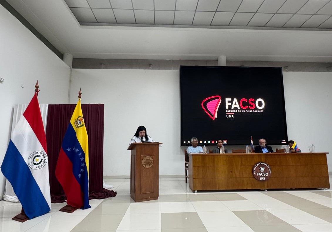 En horas de la tarde de este lunes, 14 de octubre, la Embajada de la República Bolivariana de Venezuela en la República del Paraguay, junto con la Facultad de Ciencias Sociales de la Universidad Nacional de Asunción (FACSO-UNA), realizaron el conversatorio "Resistencia Indígena contra la desigualdad y la exclusión", en el Salón Auditorio de la FACSO-UNA, dirigido a los estudiantes de las carreras de Trabajo Social y Sociología de la casa de estudios.
