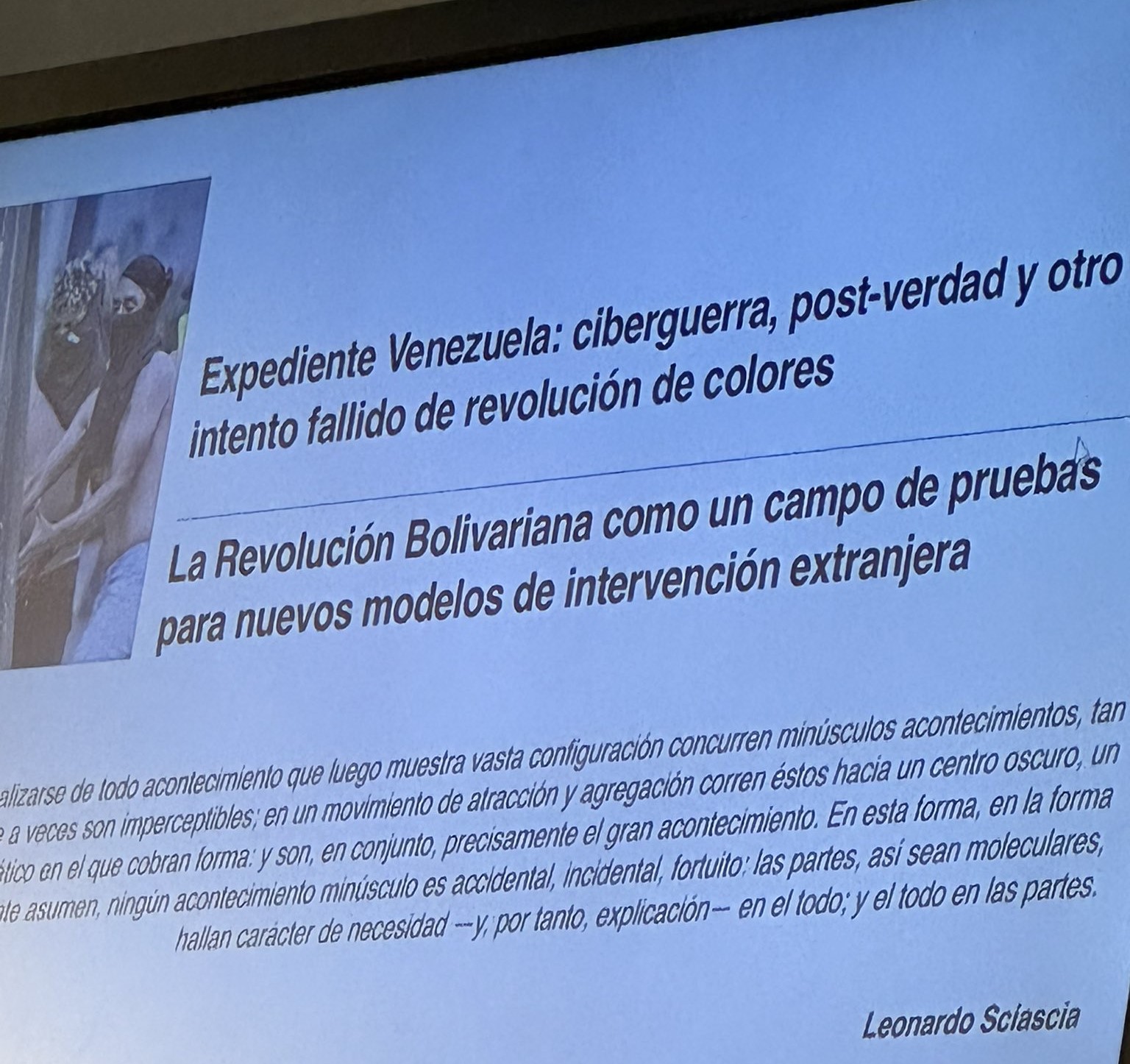 Durante la conferencia, el analista político e investigador realizó una amplia y enriquecedora exposición sobre la manera en que Venezuela ha sido utilizada, una y otra vez, por potencias occidentales como un terreno de prueba para nuevos modelos de intervención extranjera.