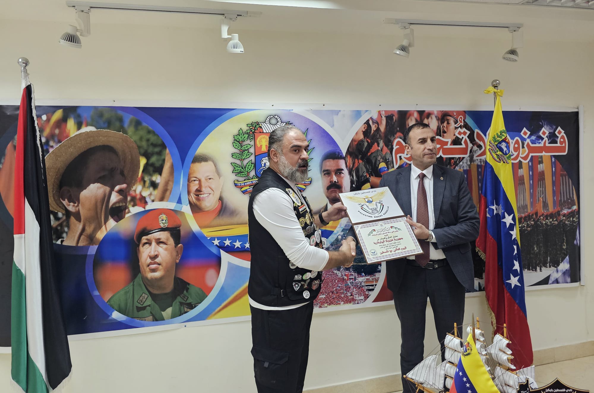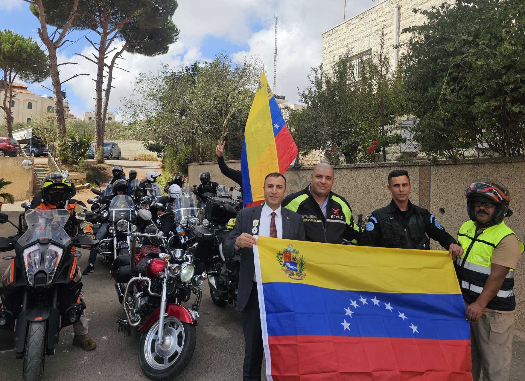 La Embajada de Venezuela en Palestina recibió el 17 de octubre al Grupo de Viajeros Moto Club Palestina, cuyos integrantes agradecieron al país suramericano por la Jornada Mundial de la Solidaridad con el pueblo palestino.