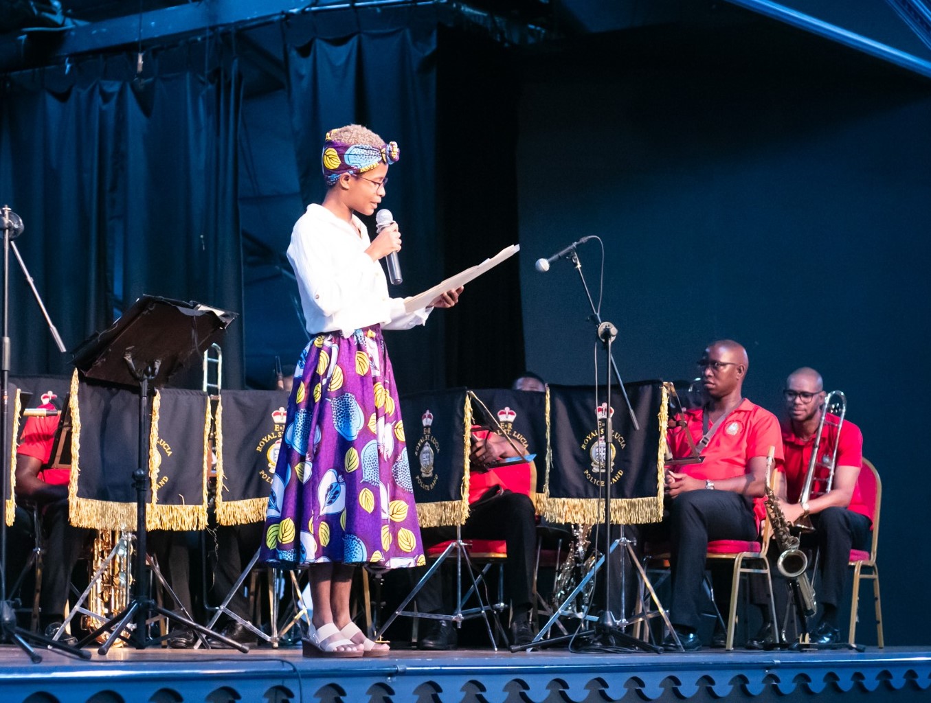 En el evento estuvo como maestra de ceremonia, Shyne Savory, una talentosa estudiante de 19 años del Programa de Artes Creativas y Escénicas del Sir Arthur Lewis Community College, quien presentó el concierto con gran destreza y entusiasmo, comenzando el programa con una invitación a entonar los himnos nacionales de cada país: "Sons and Daughters of Saint Lucia" y "Gloria al Bravo Pueblo," interpretados por las tres agrupaciones musicales de manera conjunta. Sus comentarios entre cada presentación mantuvieron a la audiencia animada y comprometida.