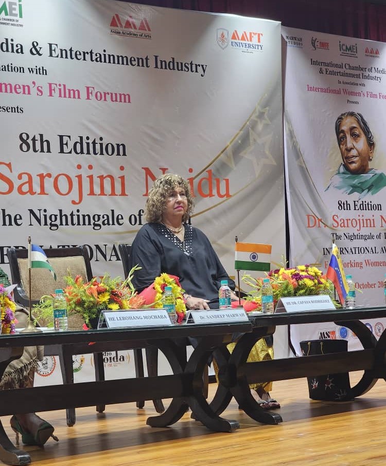 La embajadora de Venezuela en la India, Capaya Rodríguez, recibió en Noida, en su octava edición, el Premio Internacional “Dra. Sarojini Naidu” para Mujeres Trabajadoras, galardón otorgado por la “International Chamber of Media Entretainmet Industry” y el “International Woman´s Forum”, que rinde homenaje a las mujeres que han destacado por sus logros en sus carreras profesionales.
