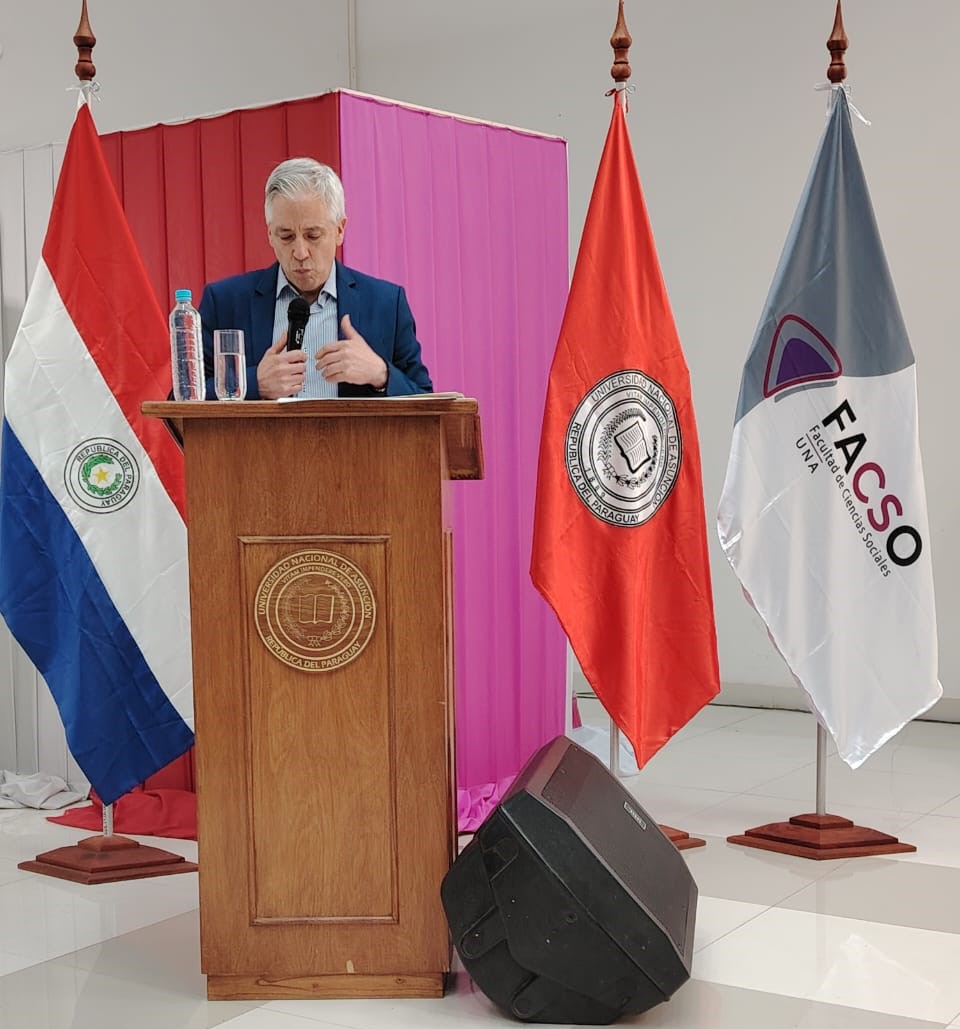 Este jueves, 17 de octubre, se desarrolló la conferencia magistral “El declive del globalismo liberal: el interregno”, dictada por el doctor Álvaro García Linera, exvicepresidente del Estado Plurinacional de Bolivia, como parte de la clausura del VI Foro de Ciencias Sociales de la Facultad de Ciencias Sociales (FACSO) de la Universidad Nacional de Asunción (UNA).