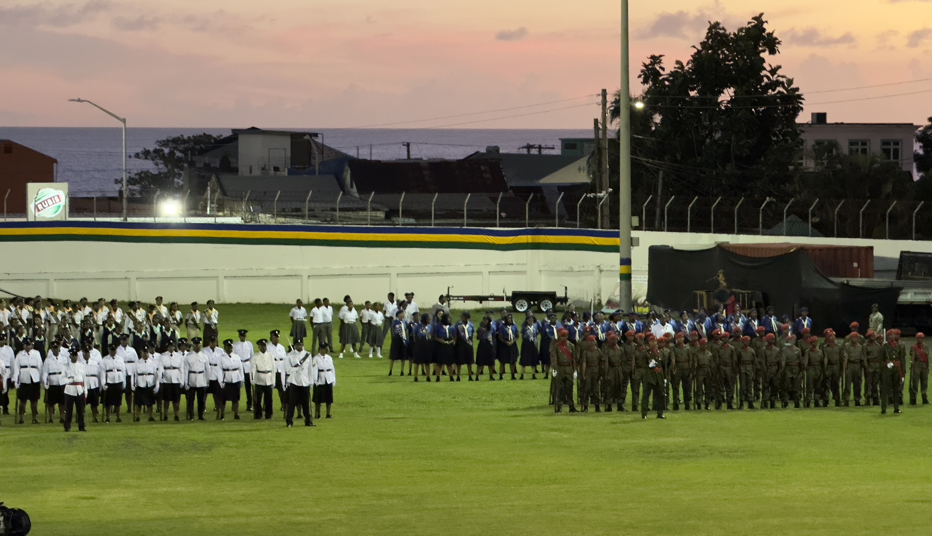 En el acto, realizado en horas de la noche, el pueblo, el cuerpo diplomático y los invitados especiales disfrutaron de un despliegue extraordinario de luces y fuegos artificiales alusivos a los colores de la bandera de la isla.