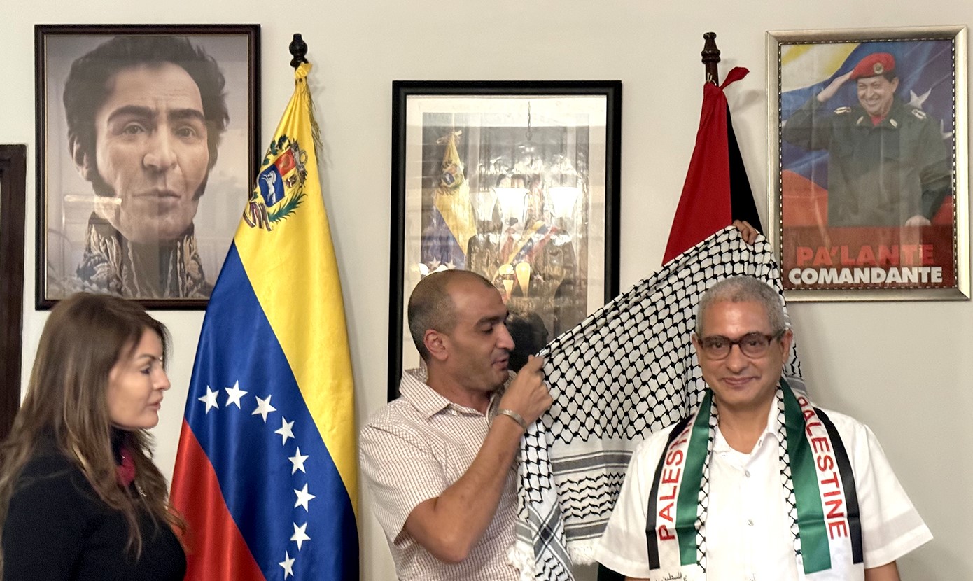 El jefe de la Misión Diplomática venezolana, Francisco Pérez Santana, expresó en nombre del Gobierno Bolivariano, del Presidente Nicolás Maduro y del pueblo venezolano, la solidaridad inquebrantable hacia la causa de lucha, resistencia y batalla que libra el pueblo palestino, víctima de los más atroces ataques que Israel y el imperio estadounidense gestan sobre este suelo sagrado.