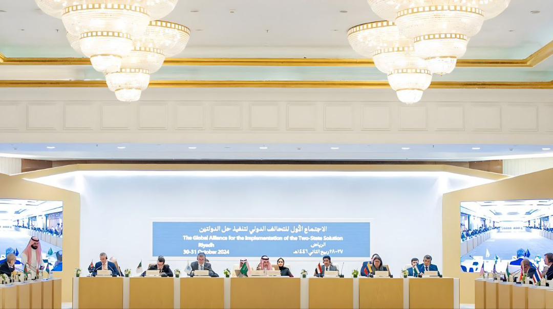 Los días 30 y 31 de octubre se realizó en Riad, capital de Arabia Saudita, la primera reunión de la Alianza Global para la implementación de la solución de los dos Estados, que contó con la participación de diplomáticos y representantes de diversas organizaciones y 94 países. Por la República Bolivariana de Venezuela asistió una delegación encabezada por la viceministra para Asia, Medio Oriente y Oceanía del Ministerio del Poder Popular para Relaciones Exteriores, Tatiana Pugh.