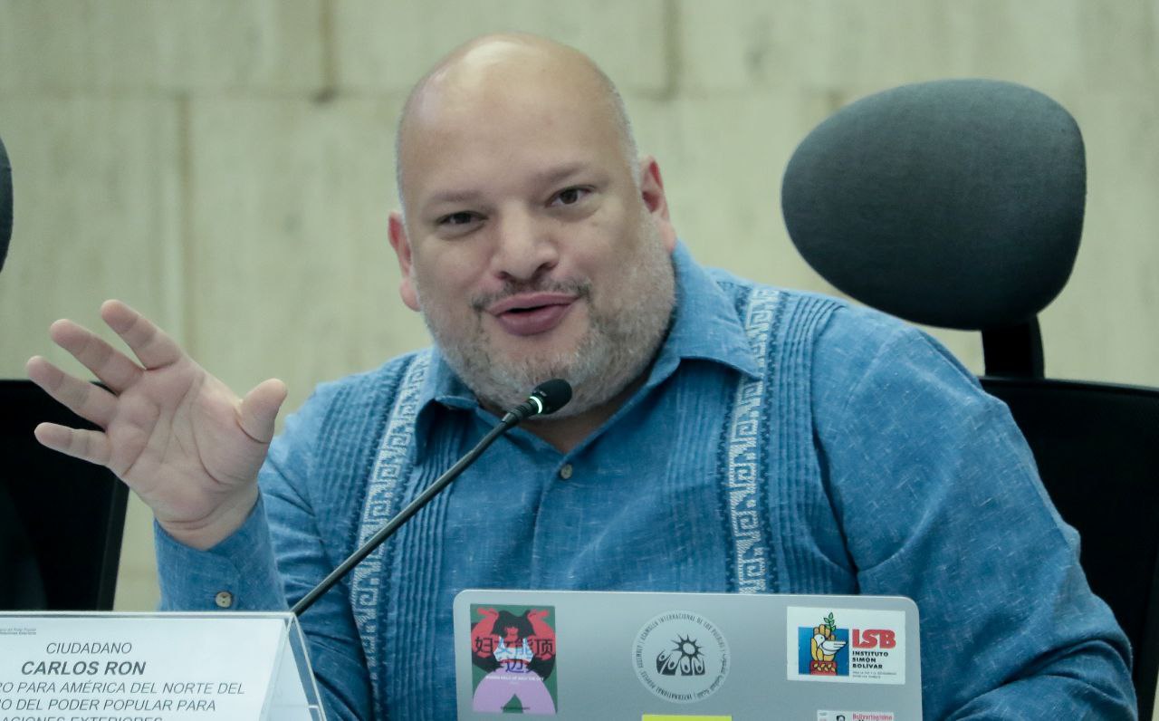 El viceministro para América del Norte del Ministerio del Poder Popular para Relaciones Exteriores, Carlos Ron, junto a un equipo de coordinadores y analistas de su despacho, explicaron cómo funciona el sistema electoral estadounidense, el único entre las democracias modernas alrededor del mundo, que desarrolla elecciones presidenciales de segundo grado a través de un Colegio Electoral.