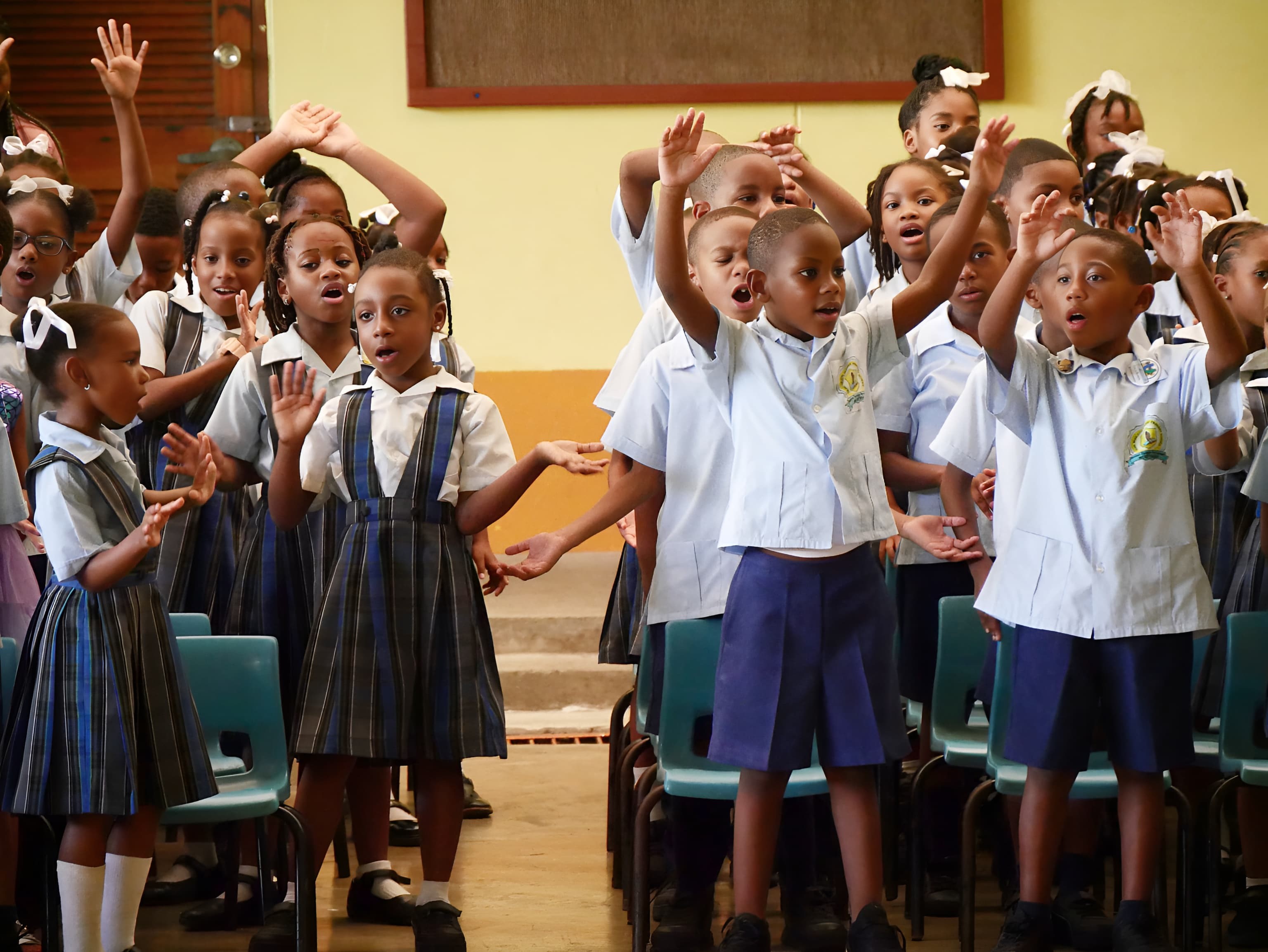 Como parte de las actividades que la Embajada viene desarrollando en colaboración con instituciones de Santa Lucía y las escuelas, se organizó una muestra musical didáctica para que los 900 estudiantes de la escuela primaria disfrutaran del talento de los jóvenes músicos que forman parte de la Escuela de Música del país insular.