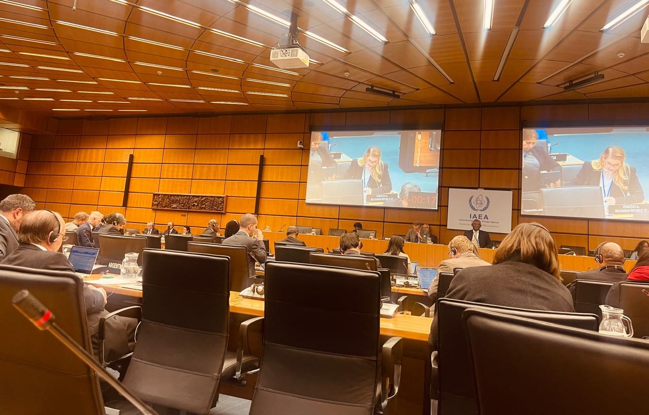 La diplomática cuestionó el interés de algunos miembros del OIEA de favorecer el ingreso en la Junta de Gobernadores de un país que, siendo una potencia nuclear, no es parte del Tratado de No Proliferación – TNP, siendo además una real amenaza nuclear para la región del Medio Oriente y para el mundo, por ser el único que no se acoge al sistema de cumplimiento de salvaguardias del OIEA.  “Es una potencia nuclear sin supervisión y en ejercicio abierto de un plan de exterminio genocida contra el Estado de Palestina”, denunció la jefa de la delegación venezolana.