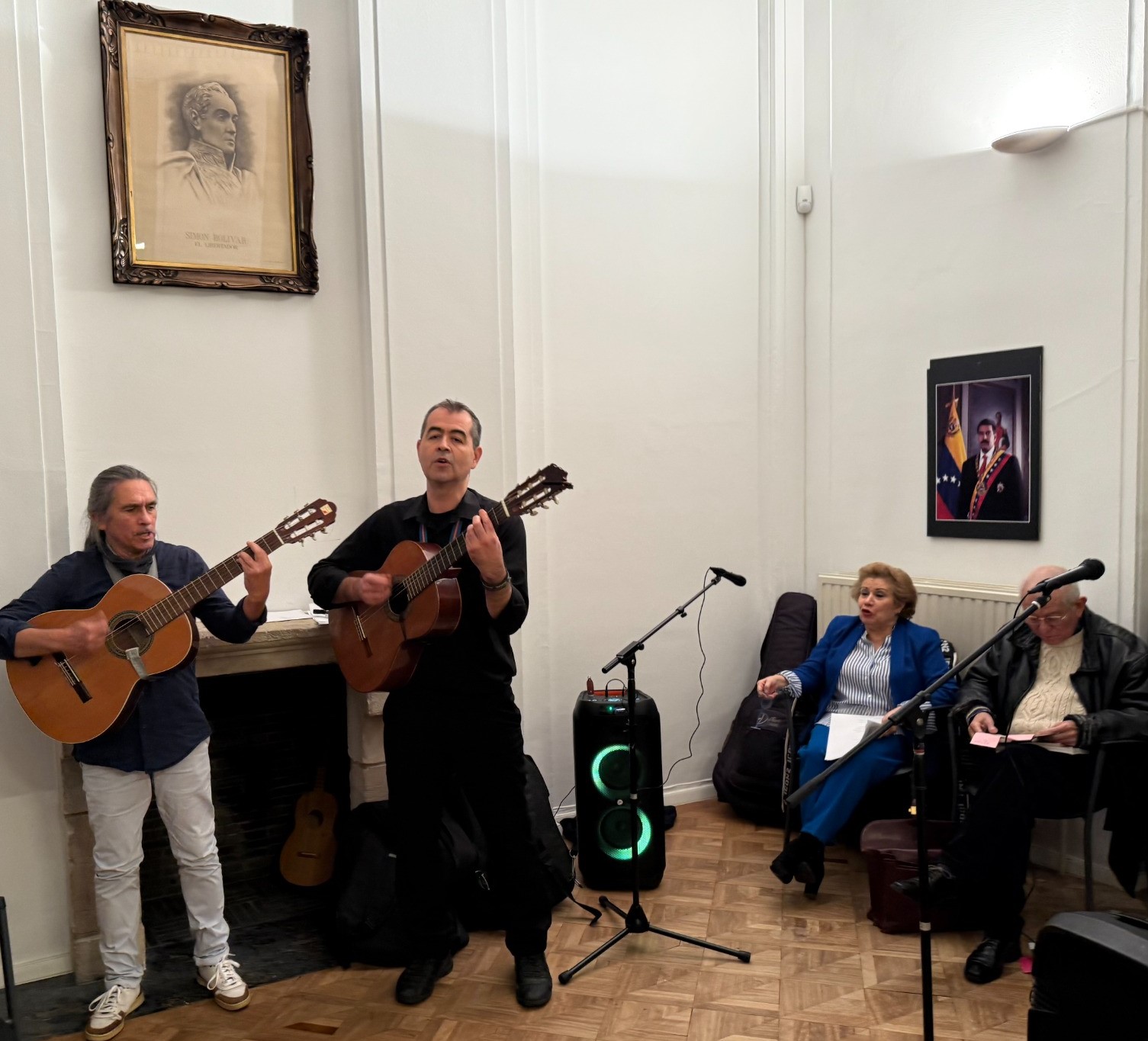 Durante el acto, leyeron poemas de su autoría el embajador Jorge Valero, jefe de la Misión ante la UE; Patricia Quintero y Miguel Colina. El evento fue moderado por Oscar Madrid y también se contó con la actuación musical de Oscar Madrid y Shopiño Cafiero, guitarristas que entonaron canciones tradicionales venezolanas.