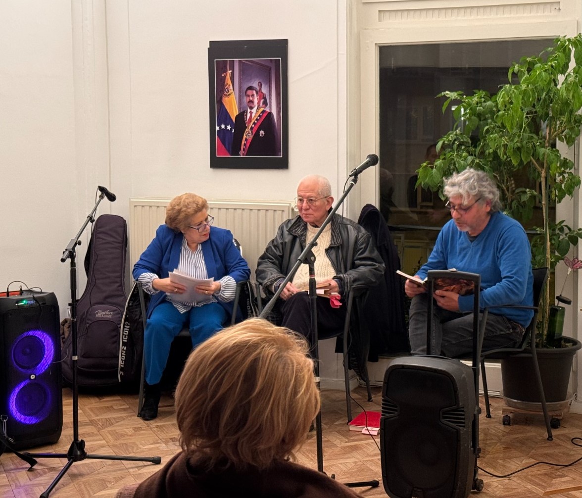 La Misión Diplomática de la República Bolivariana de Venezuela ante la Unión Europea (UE) realizó en su sede, en Bruselas, en conjunto con grupos de solidaridad con la Revolución Bolivariana, una velada cultural titulada "Noche de Poetas: 3 poemas, 3 poetas", este jueves 21 de noviembre, en el marco de las festividades navideñas.