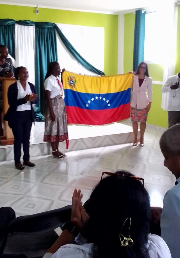 Al cierre del acto, los representantes diplomáticos de Venezuela y Nicaragua entregaron las banderas de sus respectivos países, como símbolo de amistad entre los pueblos y testimonio de la unidad de la representación de los países del ALBA-TCP (Alianza Bolivariana para los Pueblos de Nuestra América-Tratado de Comercio de los Pueblos) en Angola.