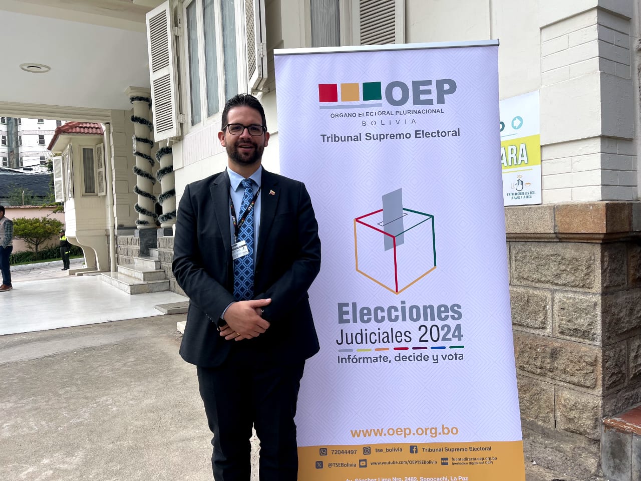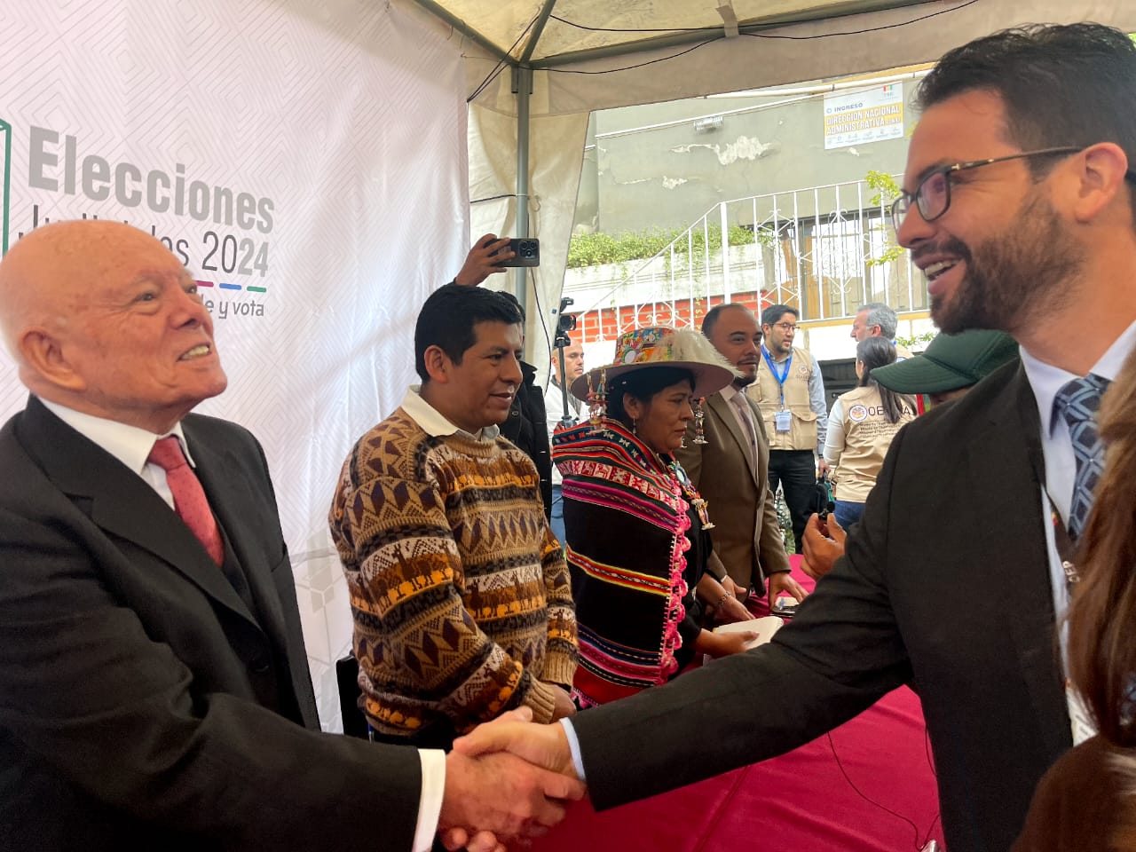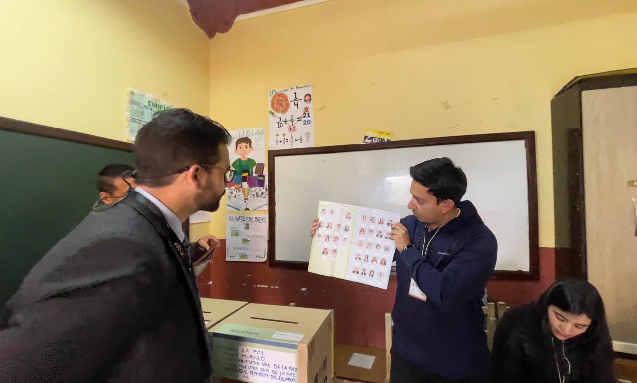 Bolivia es el único país en el mundo que elige a sus altos magistrados mediante voto popular. En esta tercera elección judicial, el embajador Trómpiz visitó la Unidad Educativa “República de Ecuador”, donde observó el desarrollo del proceso electoral, que transcurrió con normalidad y culminó con el inicio del cómputo departamental bajo la observación de veedores nacionales e internacionales.