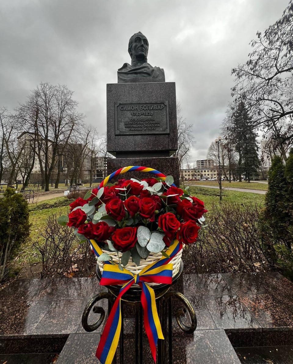 En Minsk, se conmemoró este martes la vida y el legado del Libertador Simón Bolívar, un hombre cuya visión y valentía forjaron el destino de varias naciones suramericanas. En este día, se recuerda no solo su siembra, sino también su inmortal contribución a la libertad y la justicia en América Latina. En razón a ello, la Embajada de la República Bolivariana de Venezuela en la República de Belarús realizó una ceremonia de ofrenda floral frente al busto del Padre de la Patria en la Plaza Bolívar de Minsk, para conmemorar el 194° aniversario de su partida física.