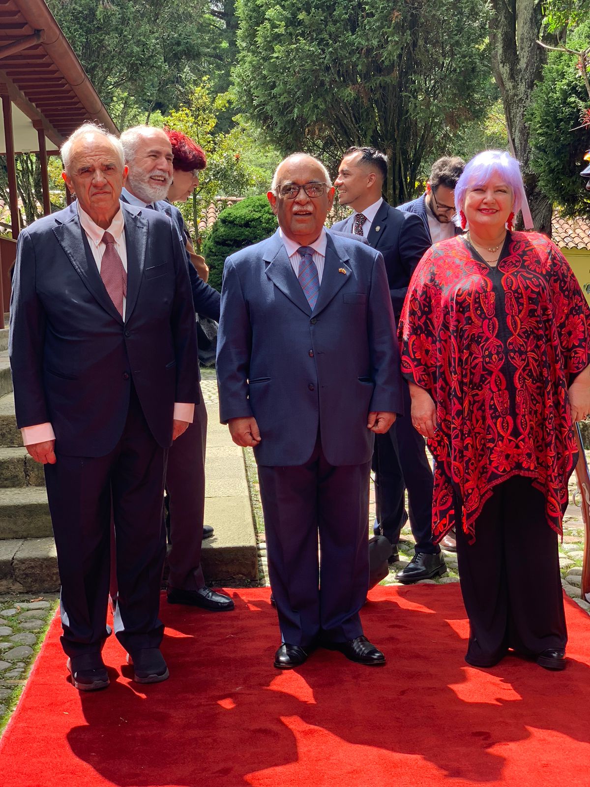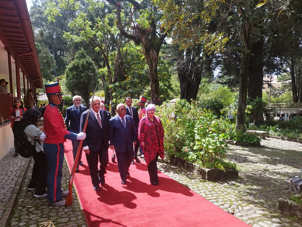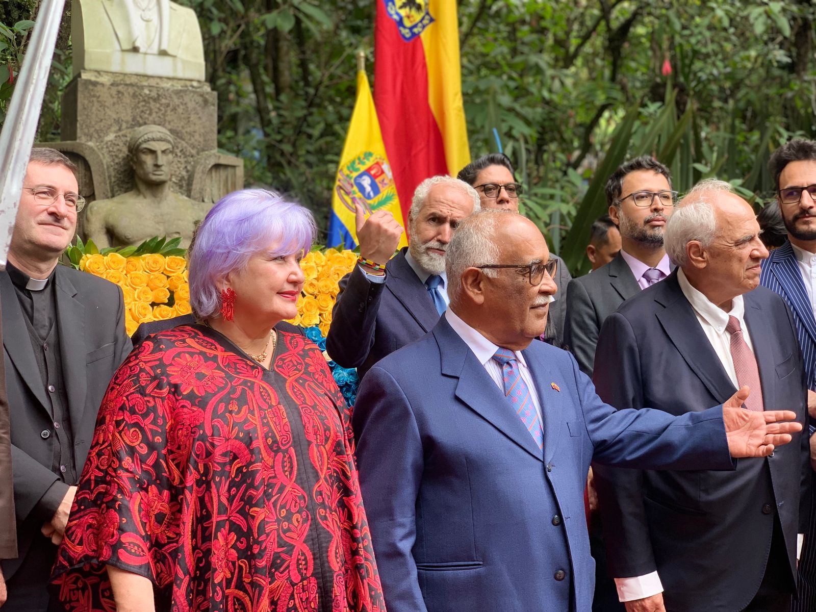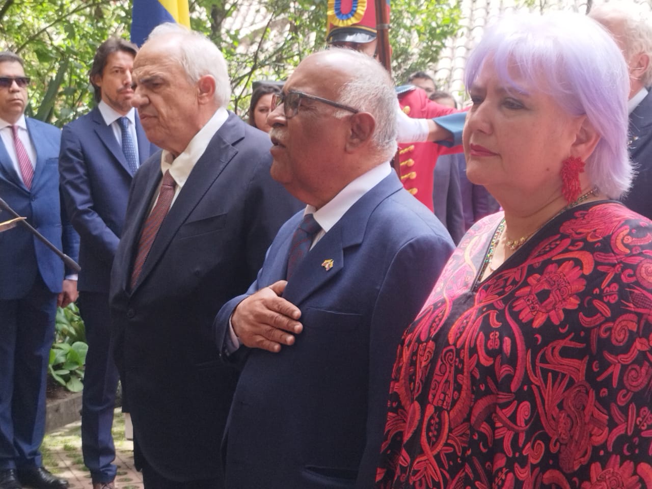 El acto simbólico estuvo encabezado por la Misión Diplomática y contó además con la participación de la senadora por el Pacto Histórico, Gloria Flórez; el expresidente de Colombia, Ernesto Samper; monseñor Paolo Rudelli, de la Nunciatura Apostólica; embajadores y encargados de negocios amigos, y la directora de la Casa Museo Quinta Bolívar, Elvira Pinzón, además de grupos de solidaridad y medios de comunicación social.