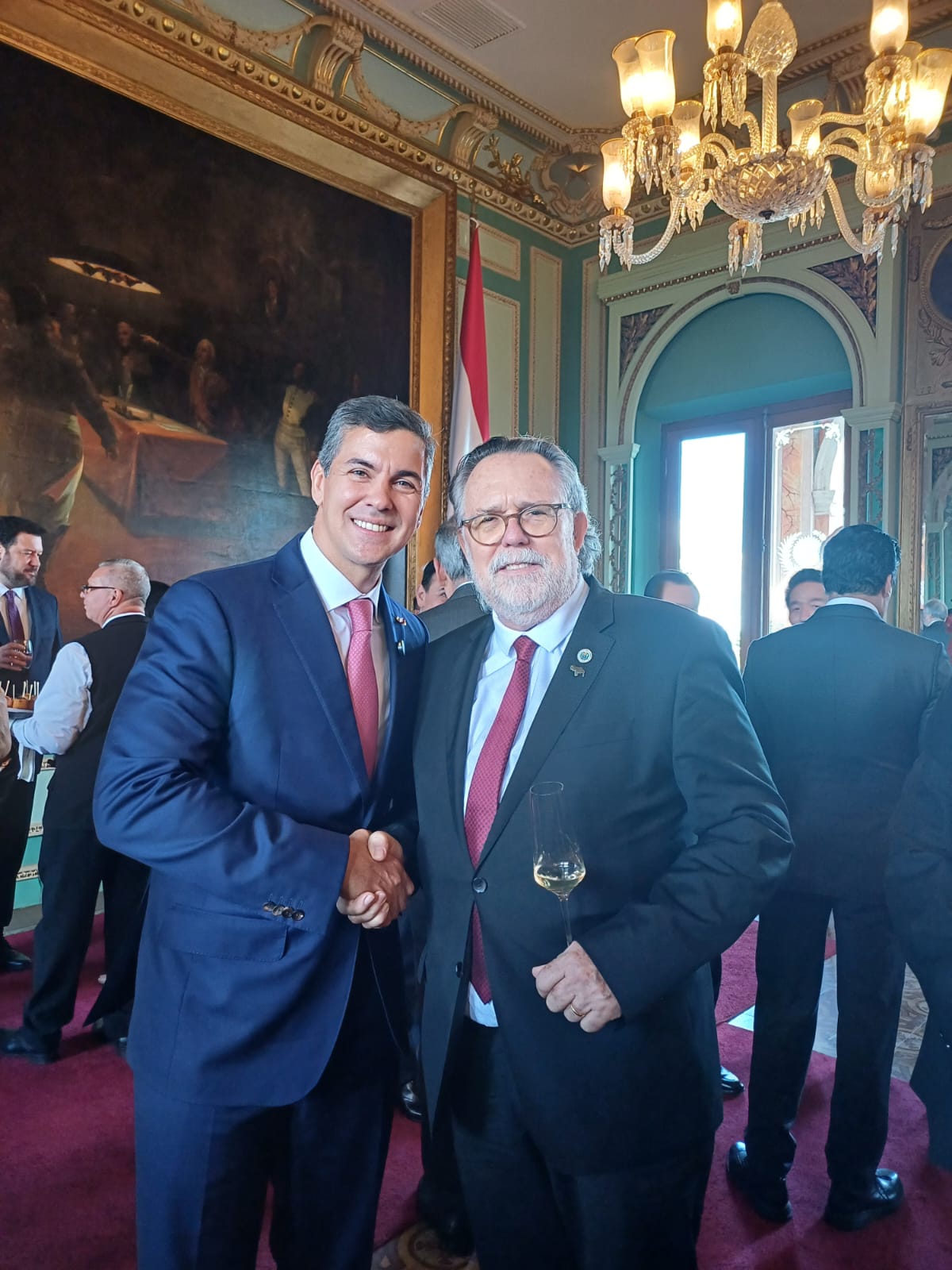 Este lunes, 16 de diciembre, el embajador de la República Bolivariana de Venezuela, Ricardo Capella Mateo, estuvo presente en el tradicional saludo ofrecido por el presidente de la República del Paraguay, Santiago Peña, con motivo de las fiestas decembrinas.