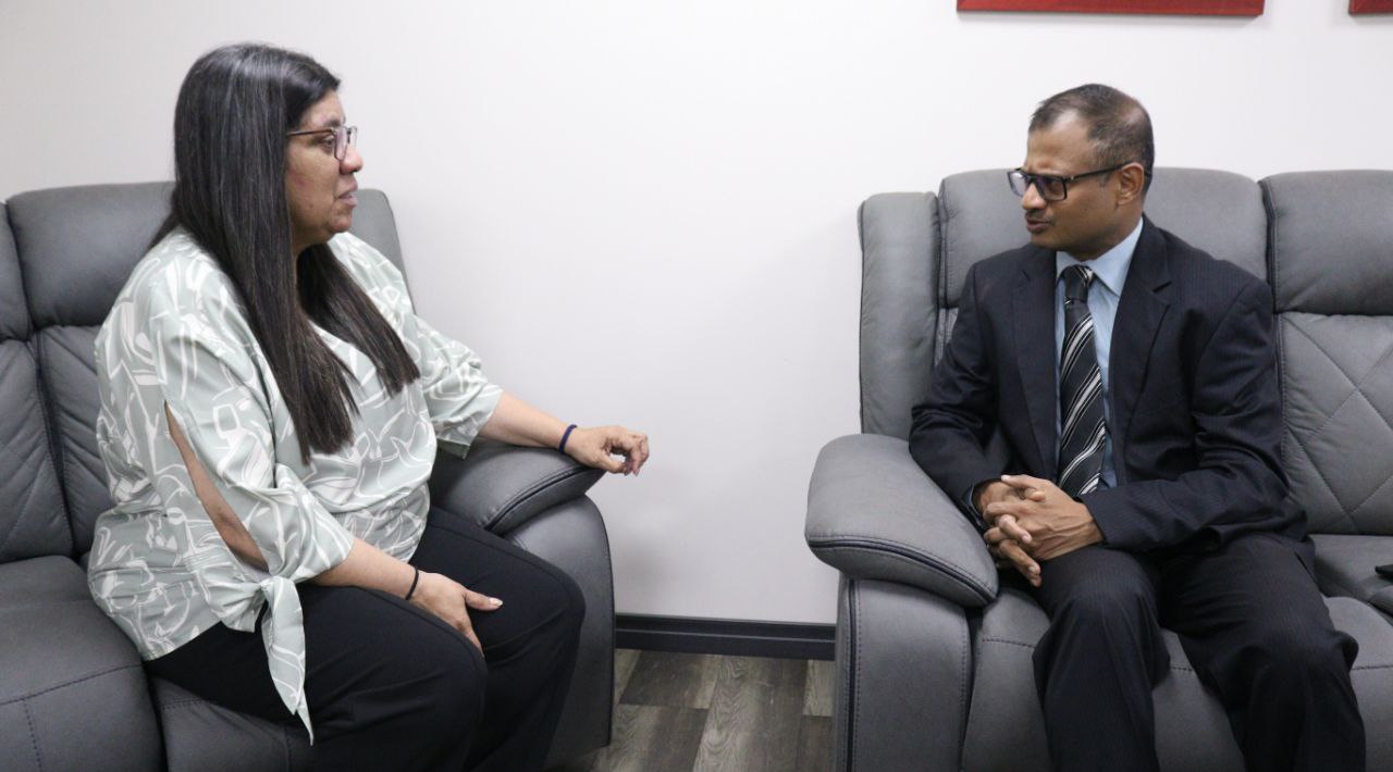 La viceministra para Asia, Medio Oriente y Oceanía del Ministerio del Poder Popular para Relaciones Exteriores, Tatiana Pugh Moreno, recibió este lunes, en su despacho en Caracas, al Embajador de la República de la India, P.K. Ashok Babu.
